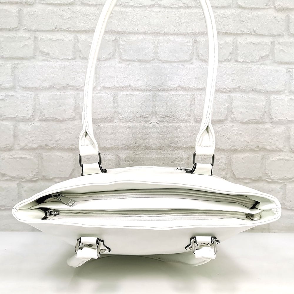 Чантата е с две отделни прегради, като всяка от тях се закопчава с отделен цип.