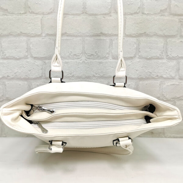 Чантата е с две отделни прегради, като всяка от тях се закопчава с отделен цип.