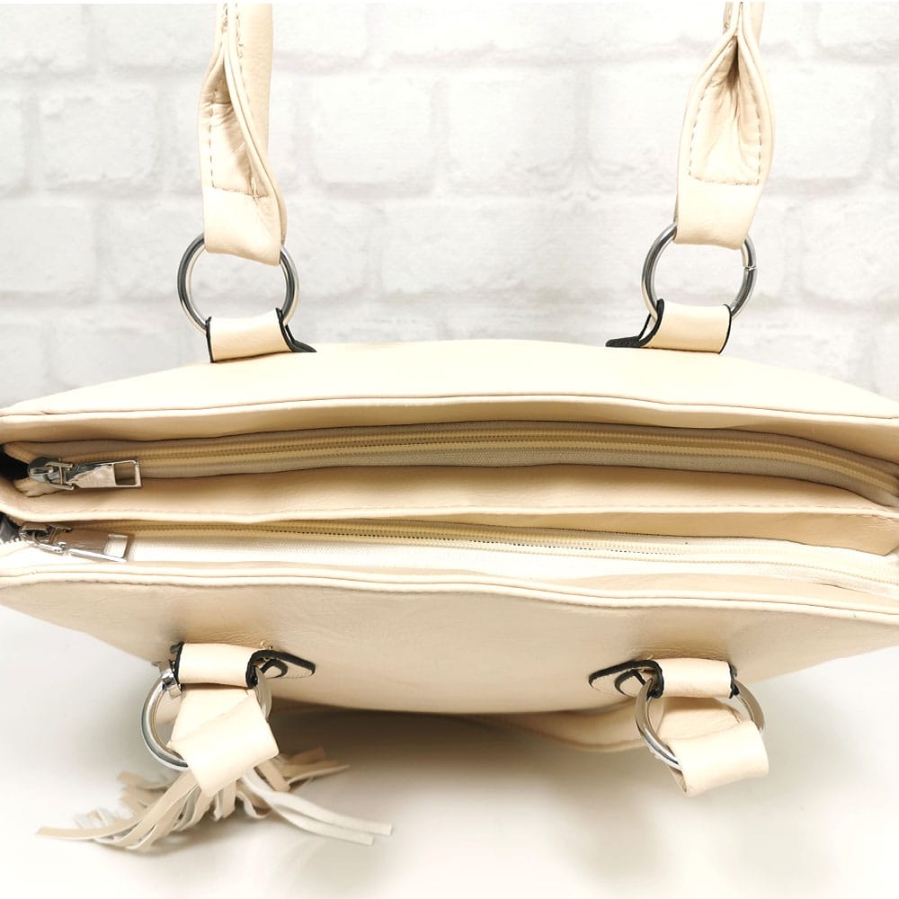 Чантата е с две отделни прегради, като всяка от тях се закопчава с отделен цип.