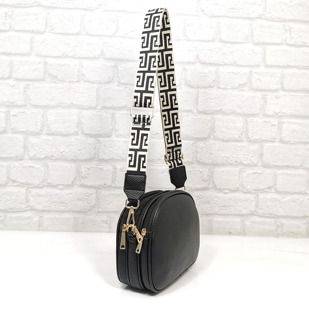 Една дълга регулираща се дръжка от тъкан текстил с ширина 3.8 см. и приблизителна максимална дължина 140.0 см. .