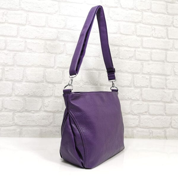 Отвътре: три отделни прегради , като средната преграда е с цип, а останалите две с магнитни копчета, джоб за мобилен телефон, малко джобче с цип.