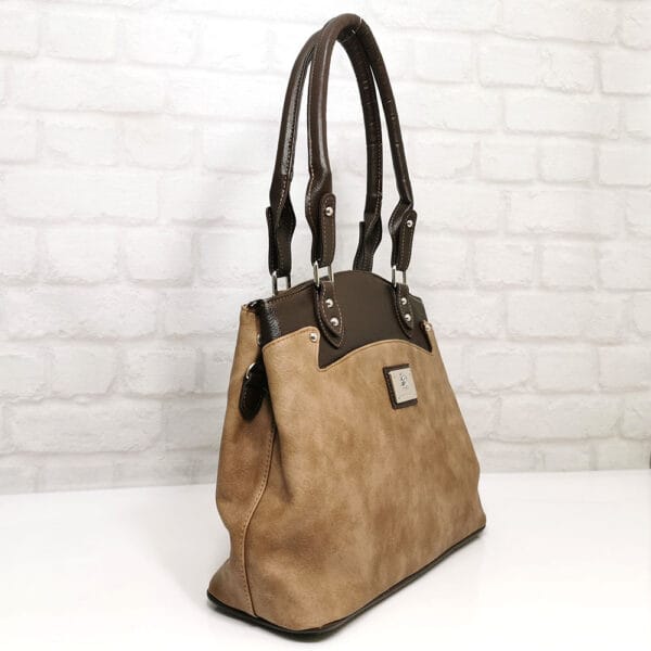 Бежов меланж, комбиниран с малко тъмно кафяво, обков сребрист.