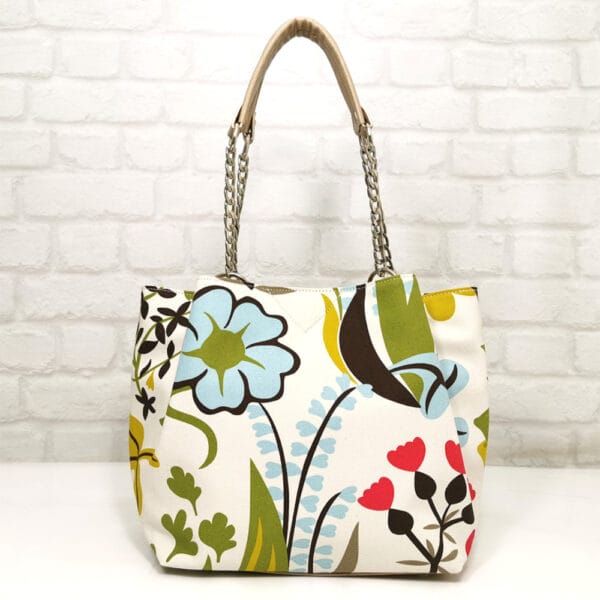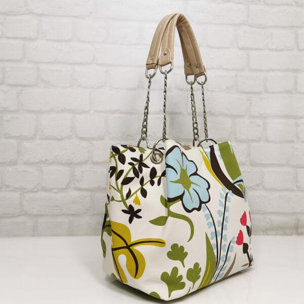 Шарена чанта за свежест и красота, с удобни три отделни прегради и оригинални дръжки, комбинация от лек плосък синджир и еко кожа. Произведена в България! Шарките на всяка отделна чанта е възможно да се различават от тези на снимката, в зависимост от това от коя част на материала е скроена чантата! Всички стоки са с преглед и тест! Безплатна доставка за заявки над 60.00 лева до офис на транспортна фирма!