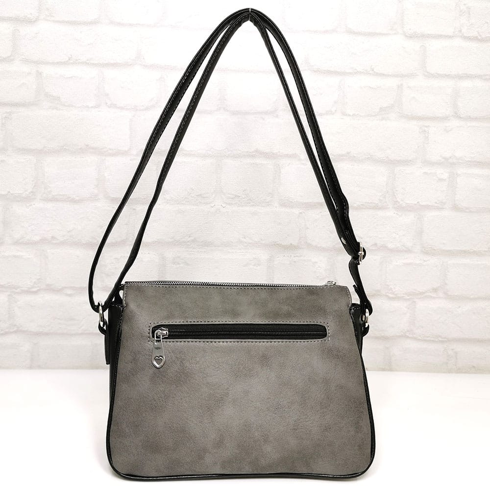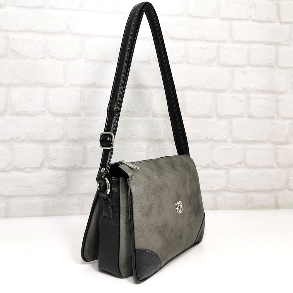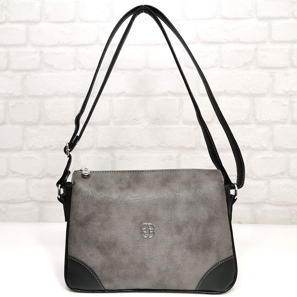 Сив (меланж), комбиниран с черно, обков сребрист.