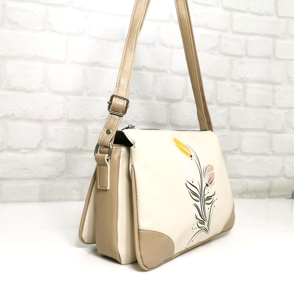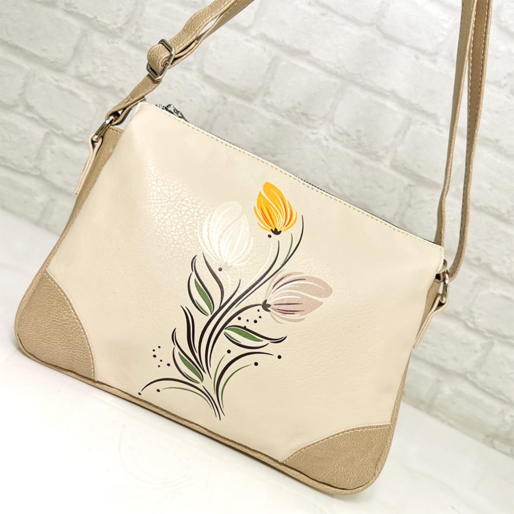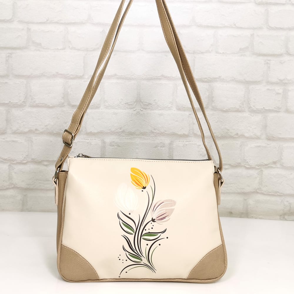 Елегантна класика в бежово и семпла цветна щампа! Тази стилна чанта през рамото излъчва изисканост и универсалност. Нейният нежен бежов нюанс се комбинира лесно с всякакъв тоалет, а удобният дизайн я прави идеален спътник за всеки ден. Има дълга регулираща се дръжката за премятане по диагонал! Добавете нотка непреходен стил към своята визия! Всички стоки са с преглед и тест! Безплатна доставка за заявки над 60.00 лева до офис на транспортна фирма!