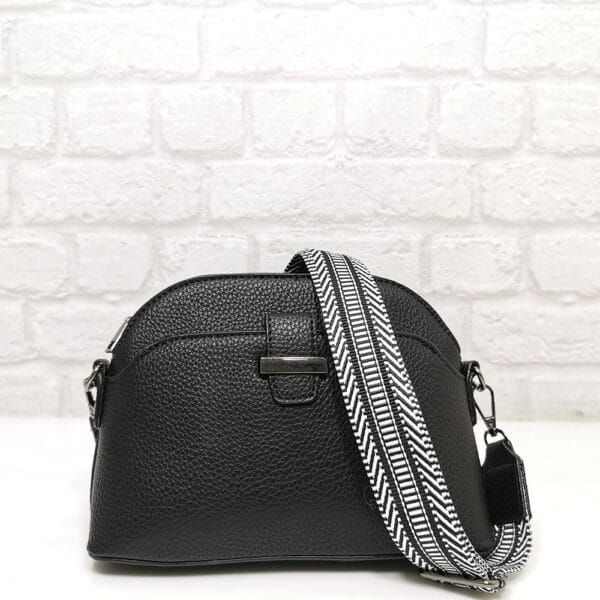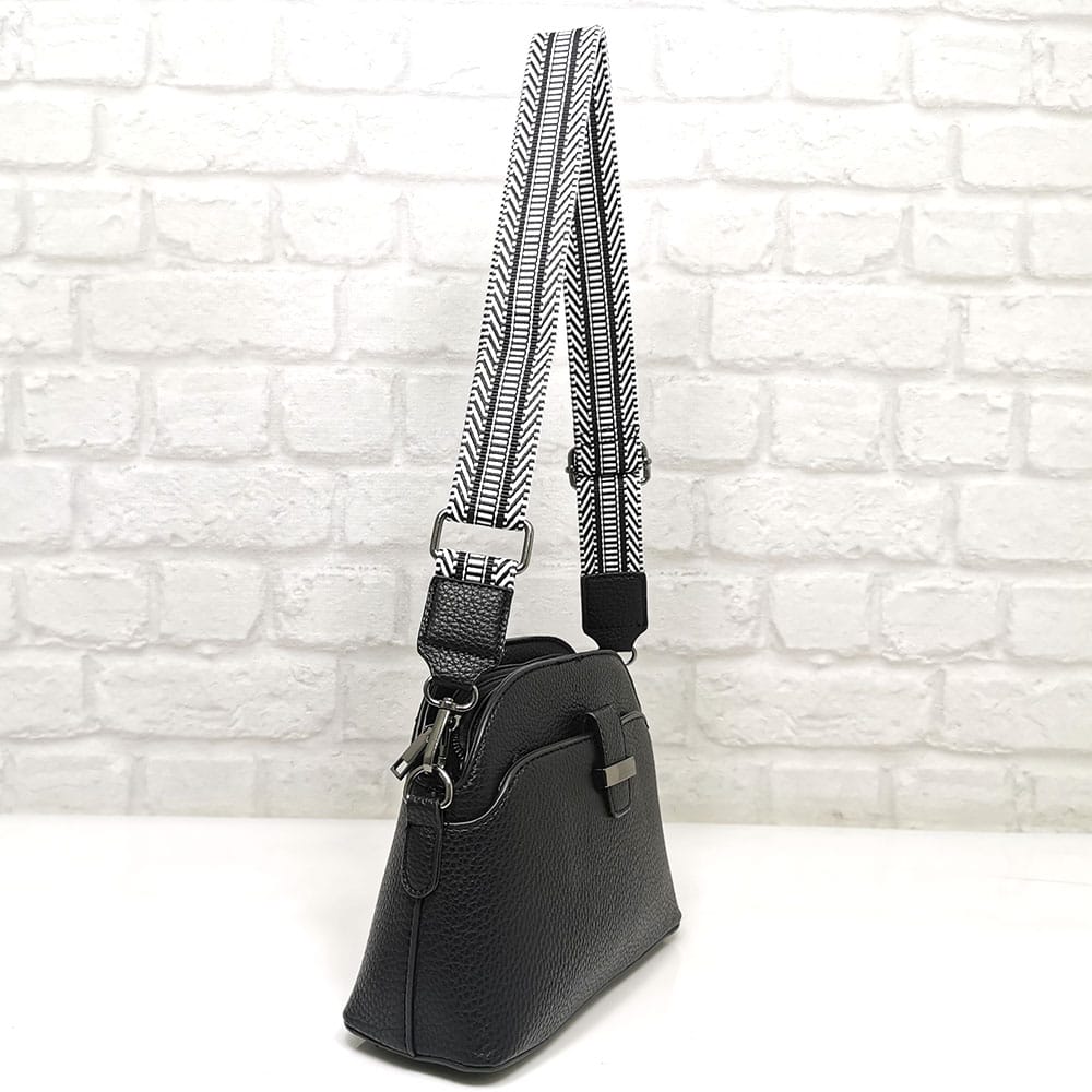 Чанта черен, дръжка комбинация от черен и бял цвят, обков сребрист, матиран.