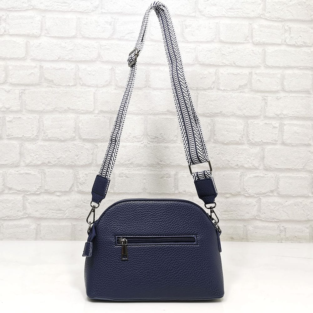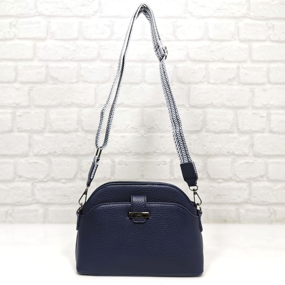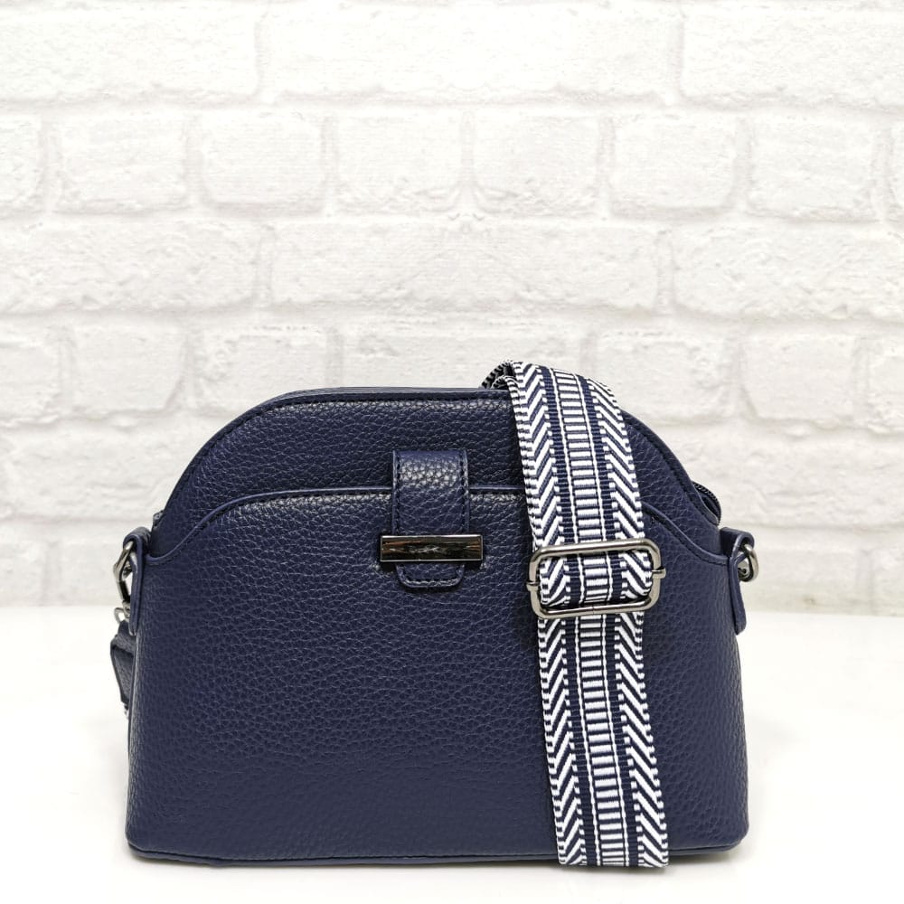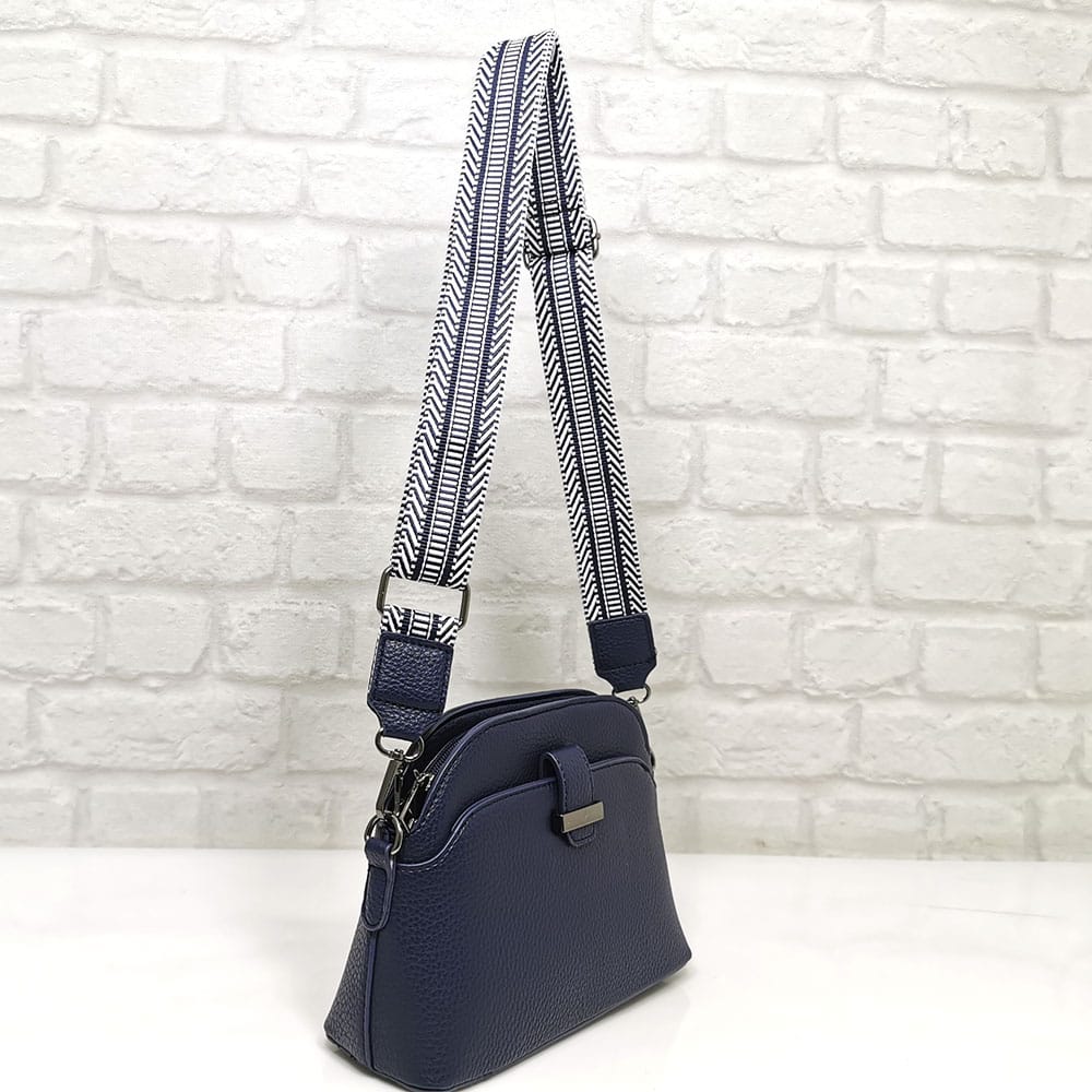 Чанта тъмно синя, дръжка комбинация от тъмно син и бял цвят, обков сребрист, матиран.