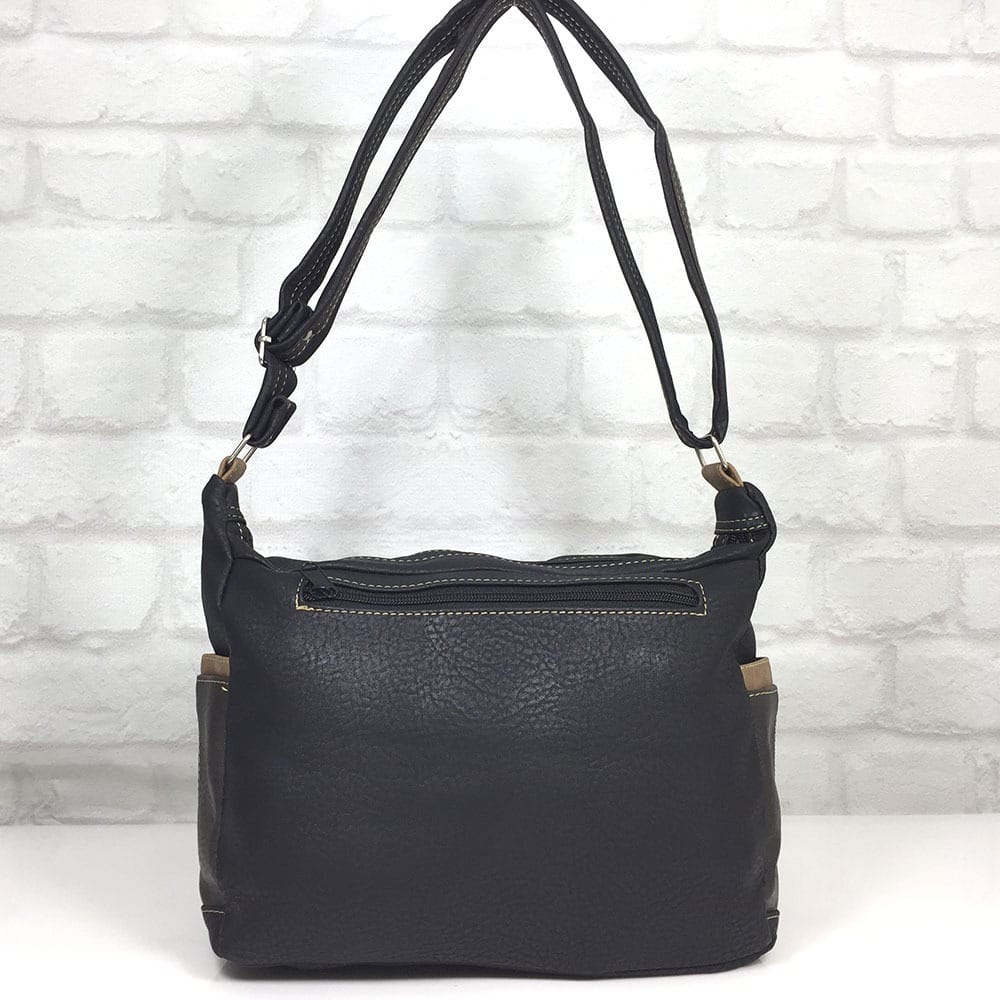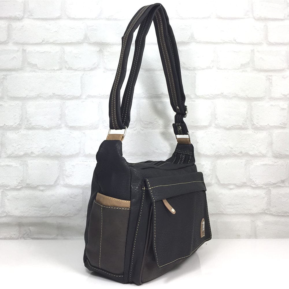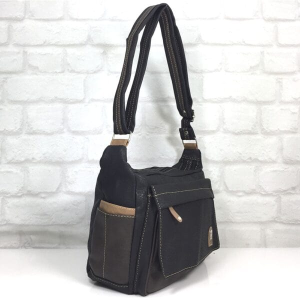 Основен черен, гарниран с тъмно кафяво и малко бежово