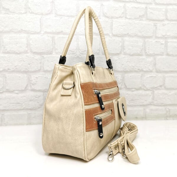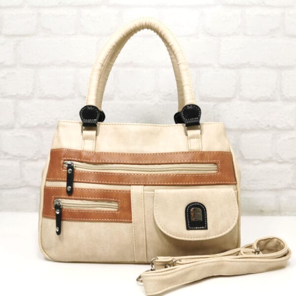 Светло бежов в комбинация с тъмно бежово и малко черно.