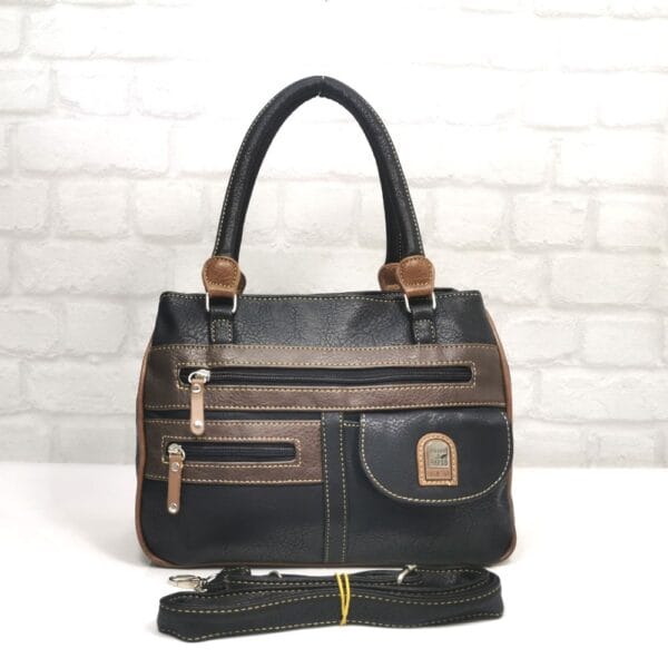 Основен цвят черен, гарниран с тъмно кафяво и тъмно бежово