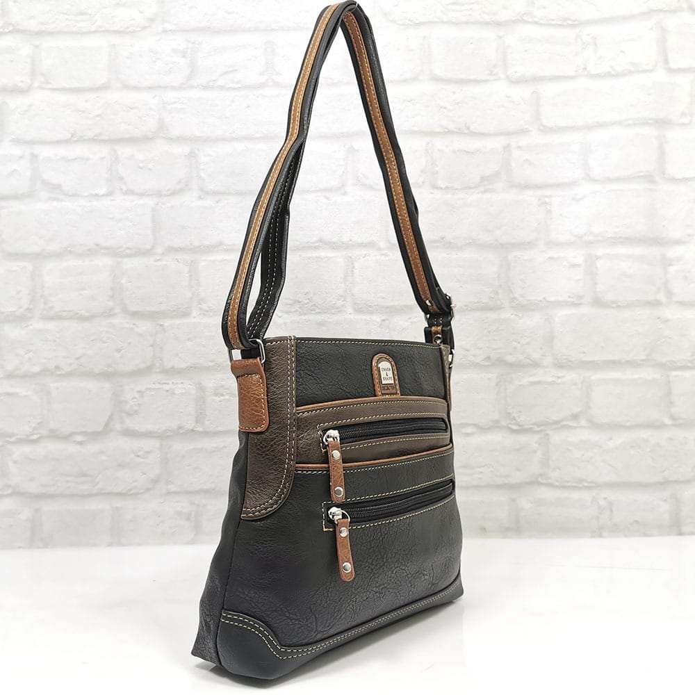 Черен в комбинация с тъмно кафяво и малко бежово