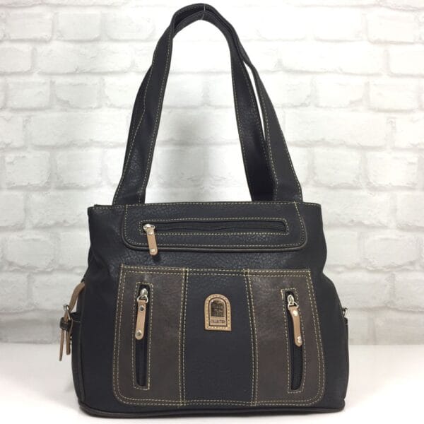 Основен черен, гарниран с тъмно кафяво и малко бежово