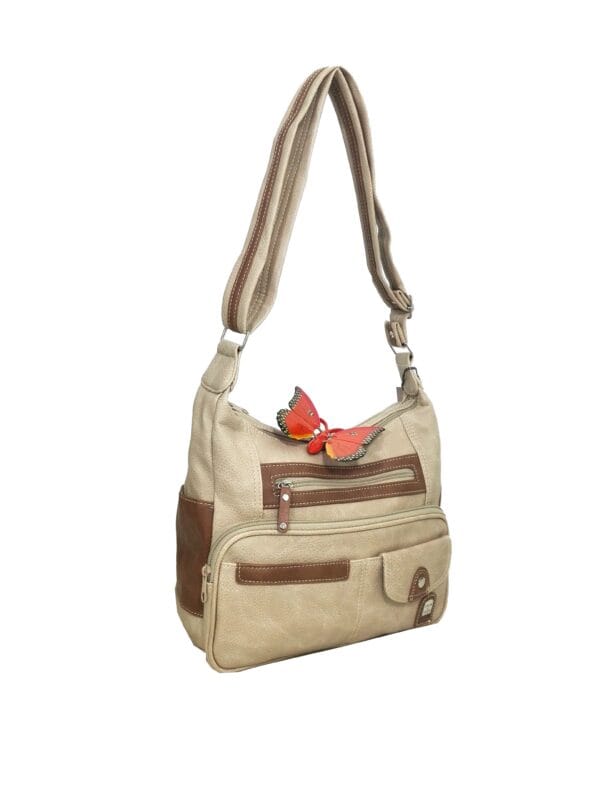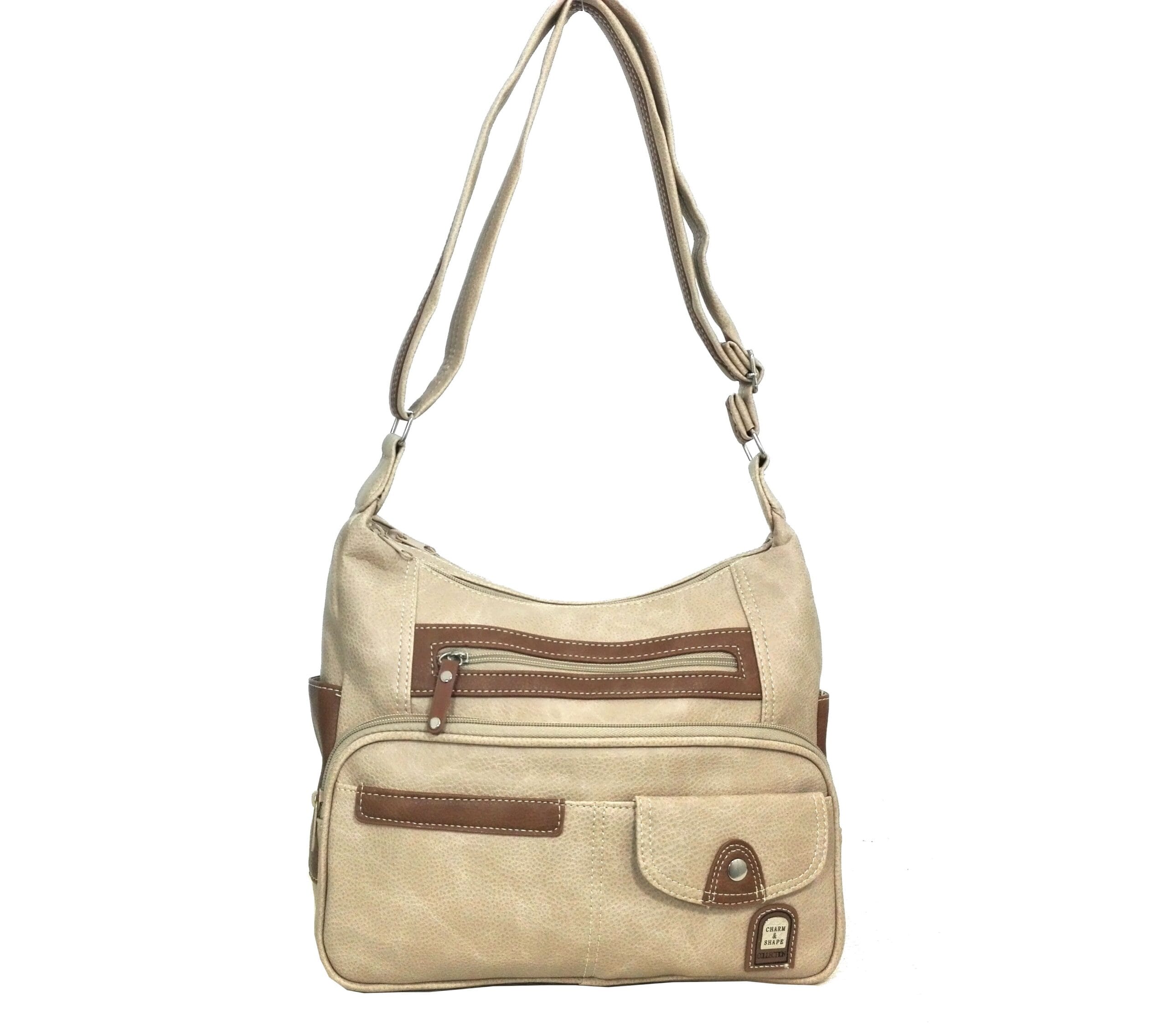 Отпред: Голям джоб с цип, среден джоб с цип, две малки джобчета едното се залепва с велкро. Отпред на капака има 2 малки джоба с цип