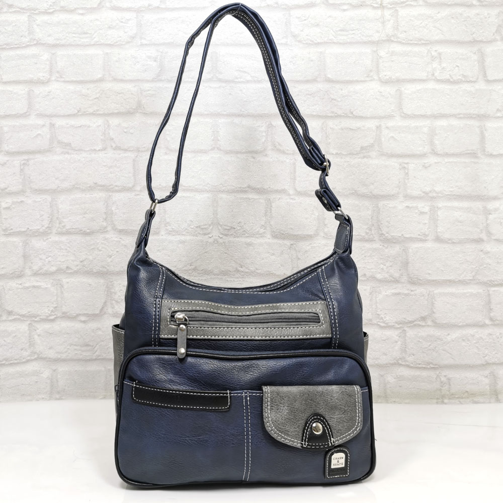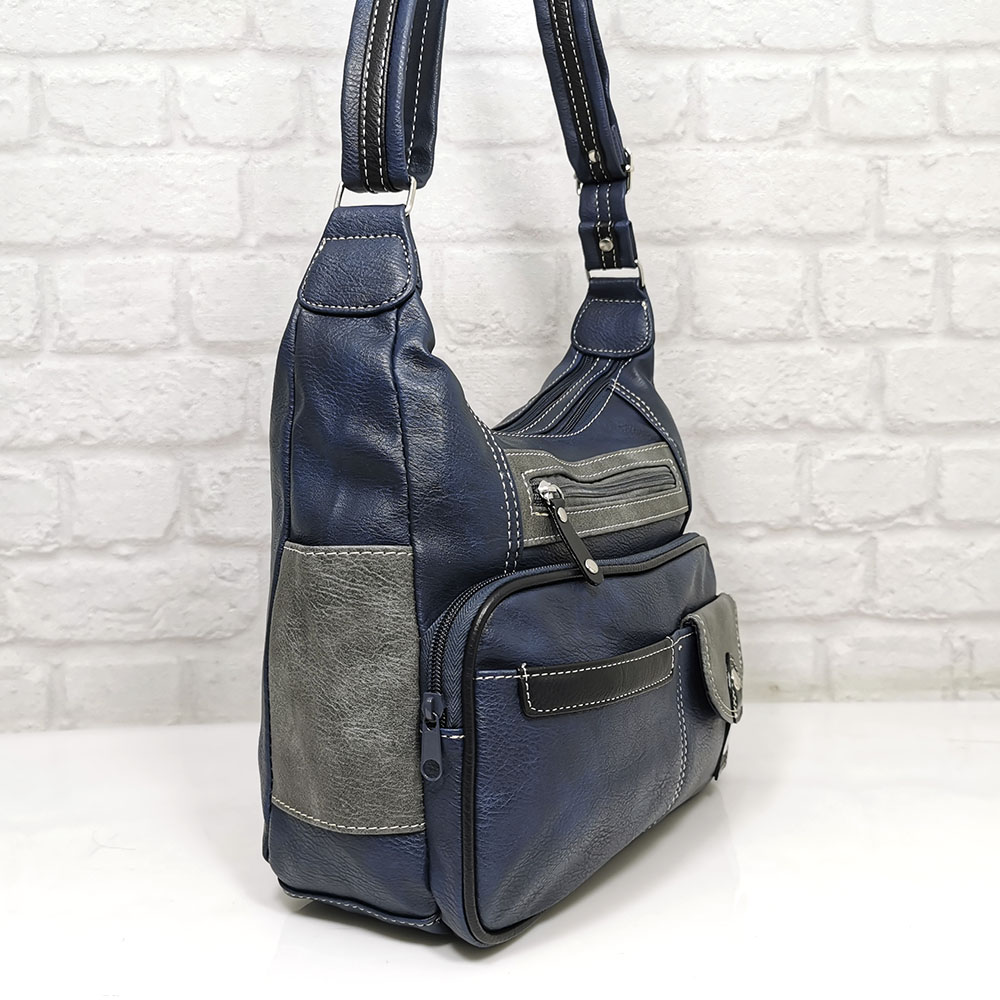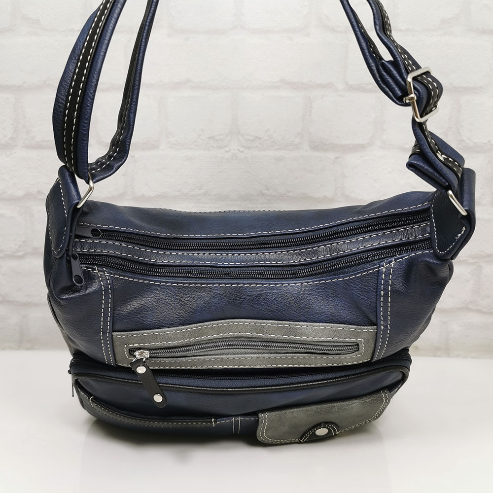 Отпред: Голям джоб с цип, среден джоб с цип, две малки джобчета едното се залепва с велкро. Отпред на капака има 2 малки джоба с цип