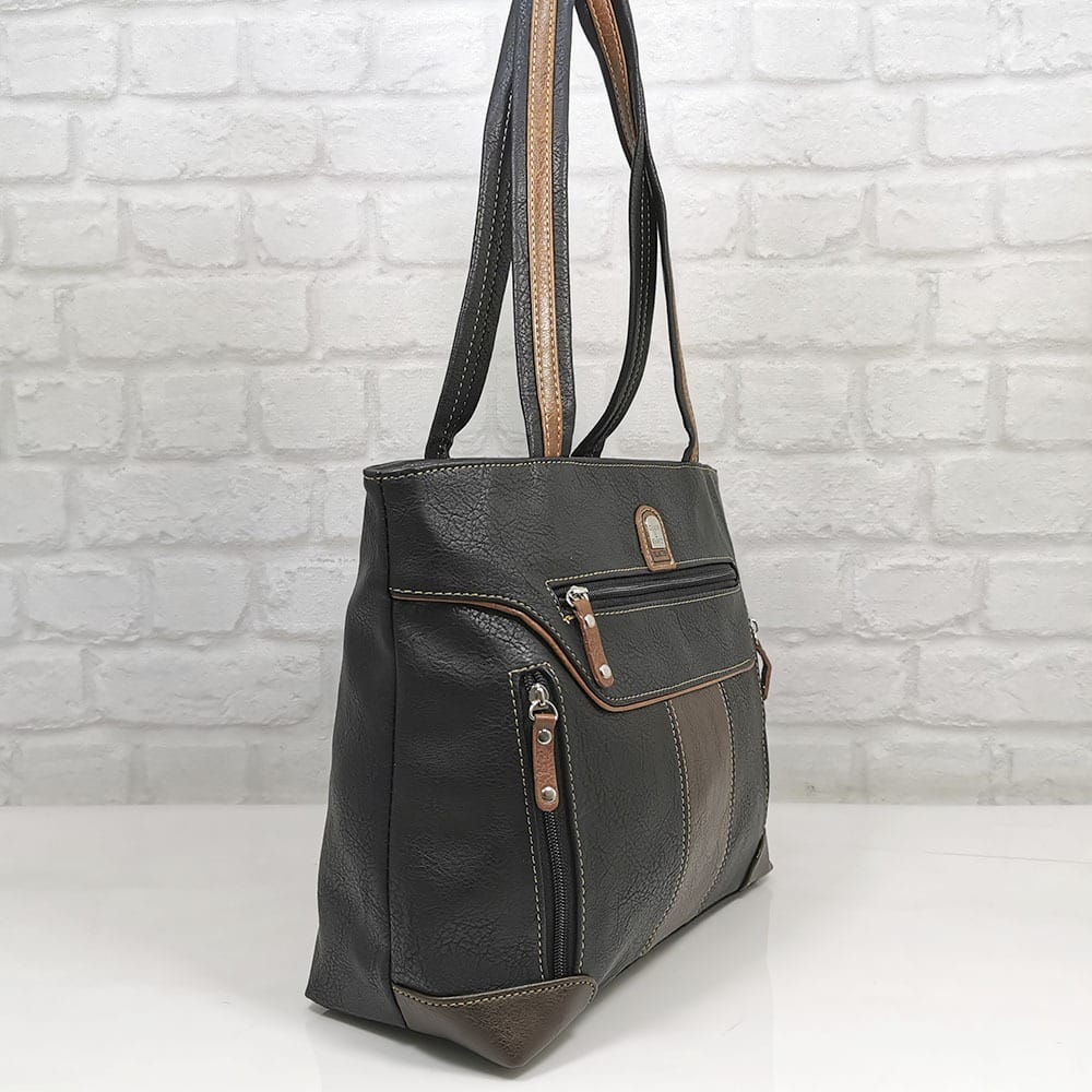 Отвътре: средна преграда с цип, джобче за документи с цип, два джоба за мобилни телефони