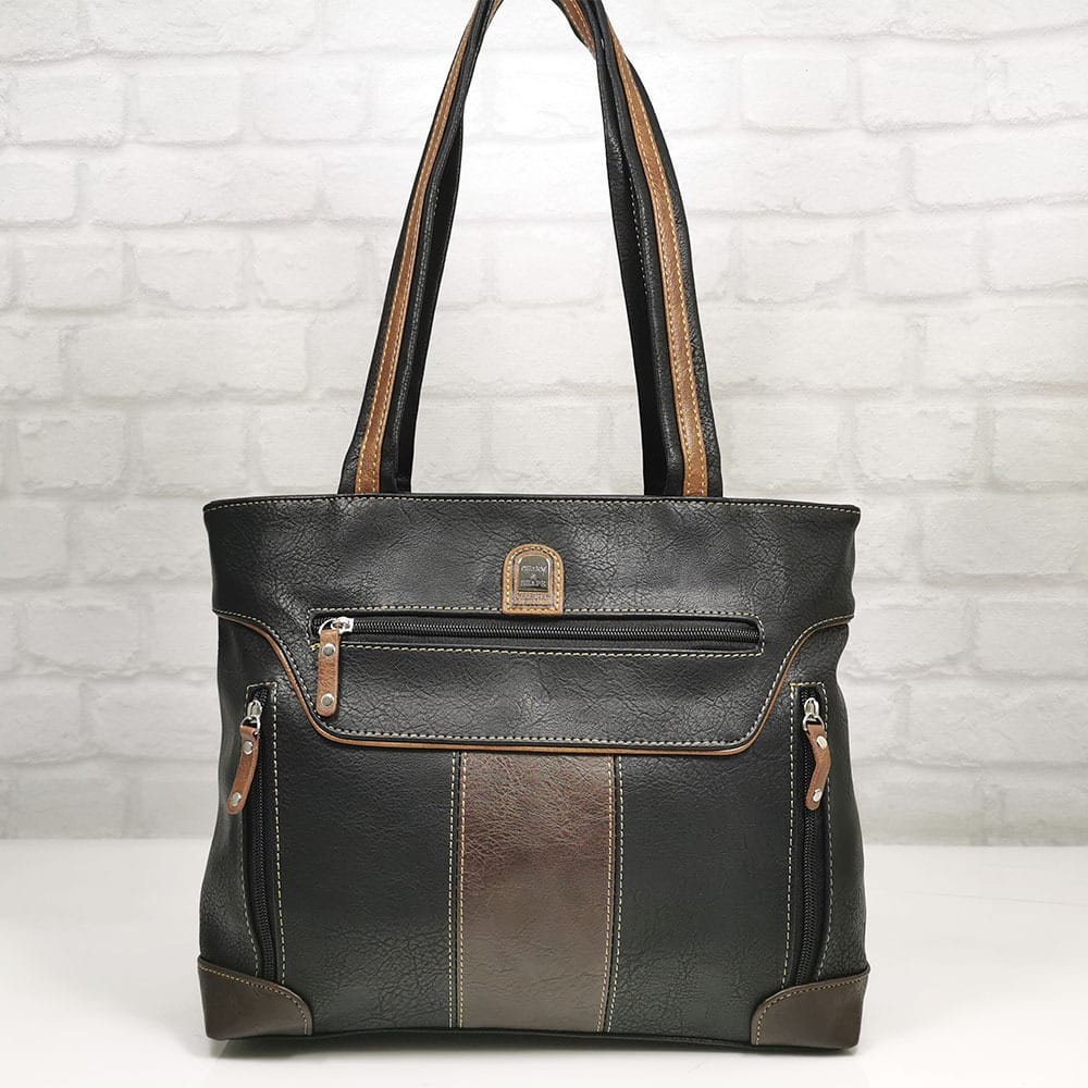 Отвън: заден джоб с цип; отпред хоризонтален джоб с цип и два вертикални джоба с ципове