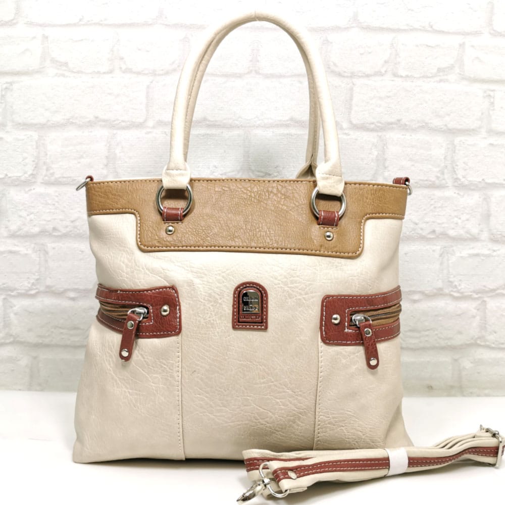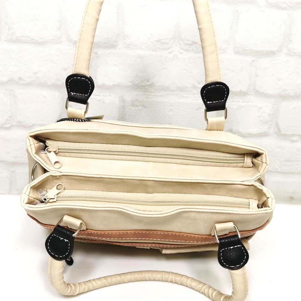 Отвътре: средна преграда с цип, джобче за документи с цип, два джоба за мобилни телефони.