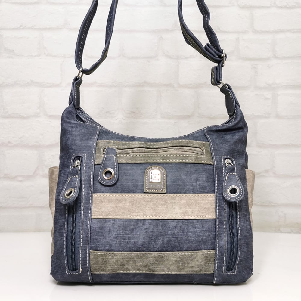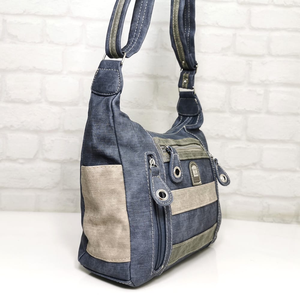 Отпред: Джоб с цип, две малки вертикални джобчета с цип.