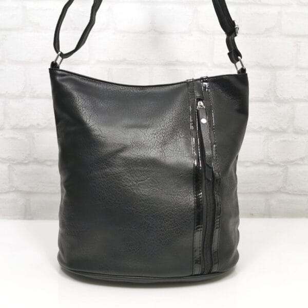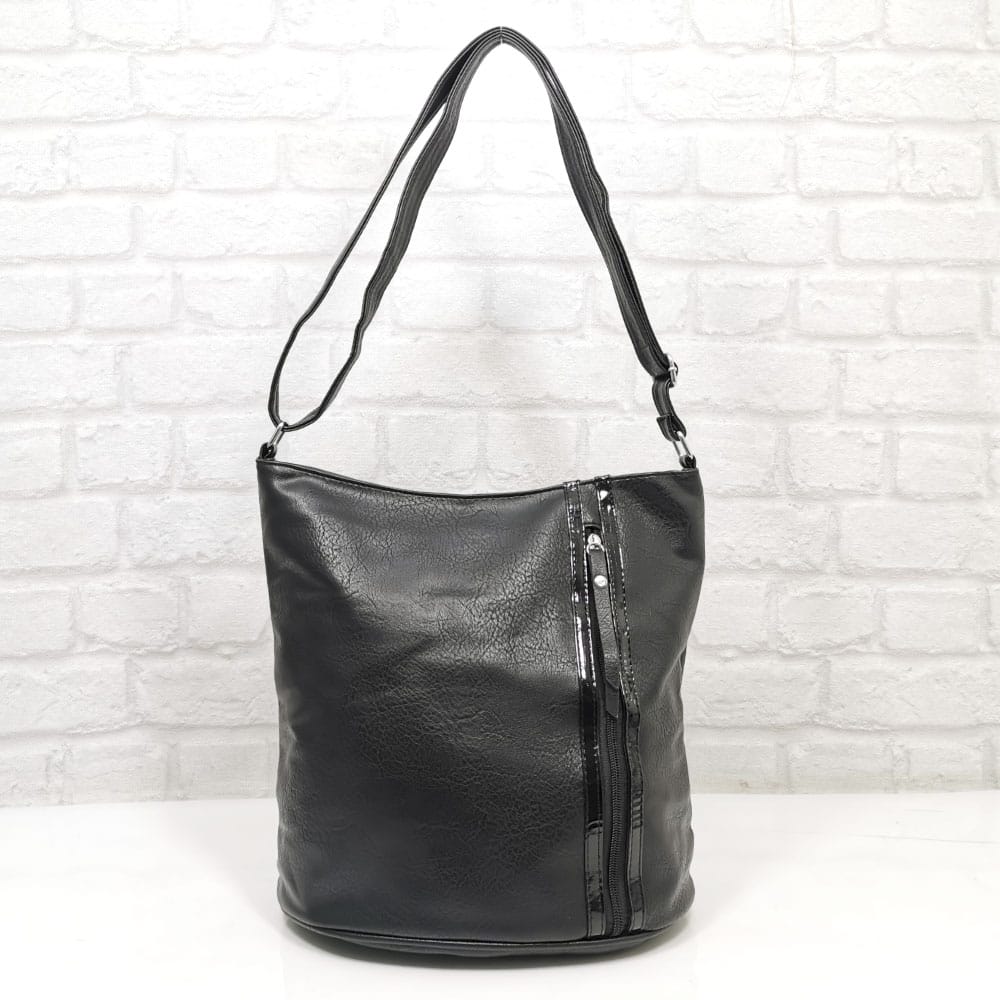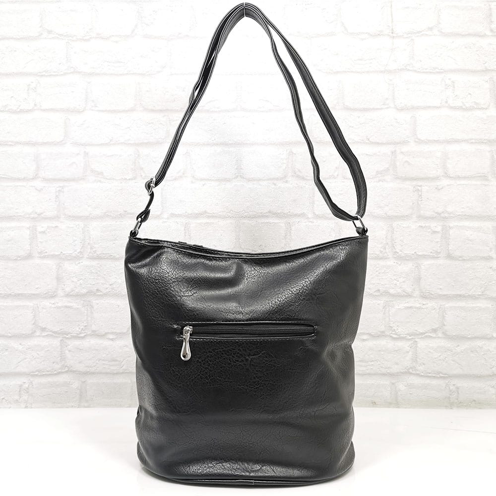 Отвън: на гърба джоб с цип, отпред вертикален джоб с цип.