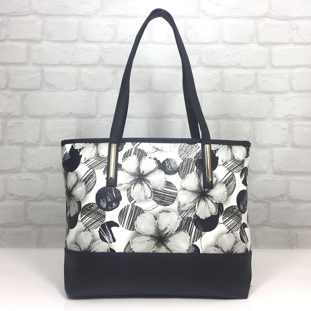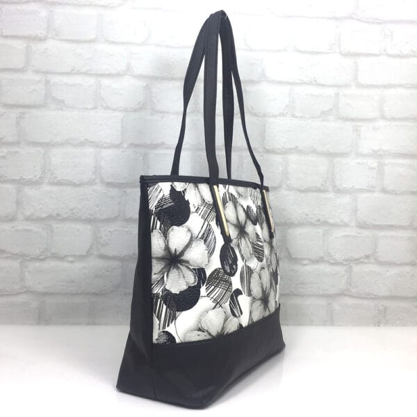Основен черен с бели цветя
