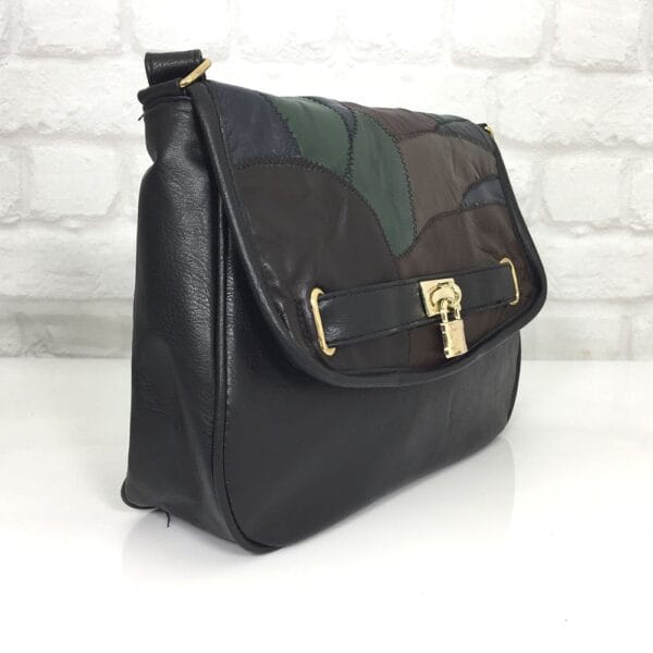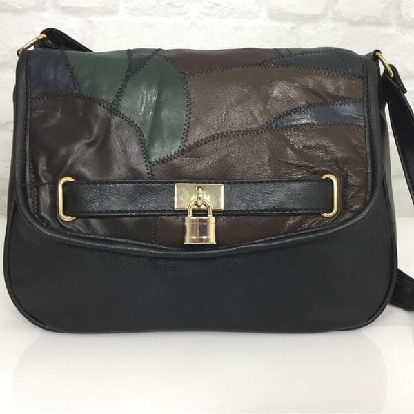 Еко кожа и естествена кожа на парчета на капака на чантата, хастар-полиестер