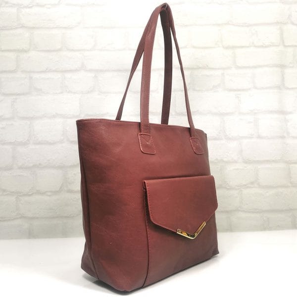 Отвън: заден джоб с цип, отпред джоб с капак с магнитно копче