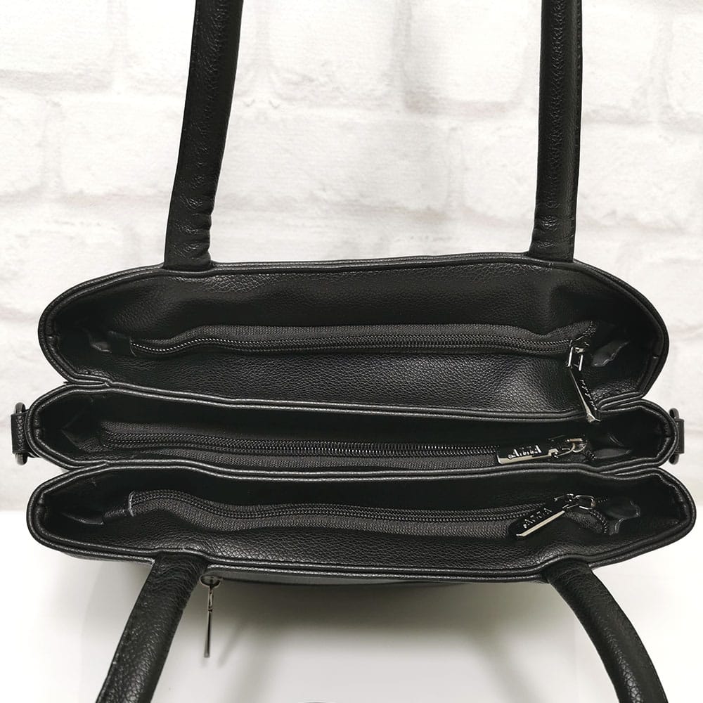 Чантата има три отделни прегради, като всяка от тях се закопчава с отделен цип. В средната преграда има малко джобче с цип и два джоба за мобилни телефони.