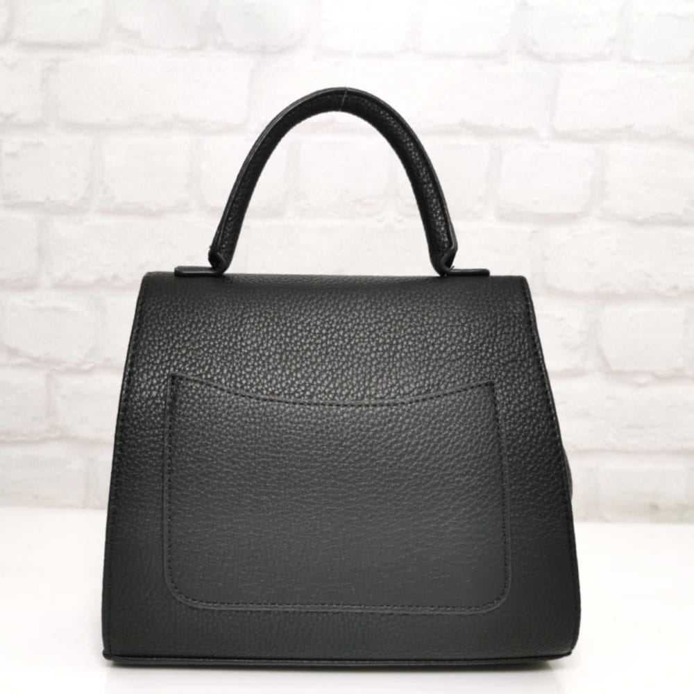 Отвън: на гърба плосък джоб без закопчаване.