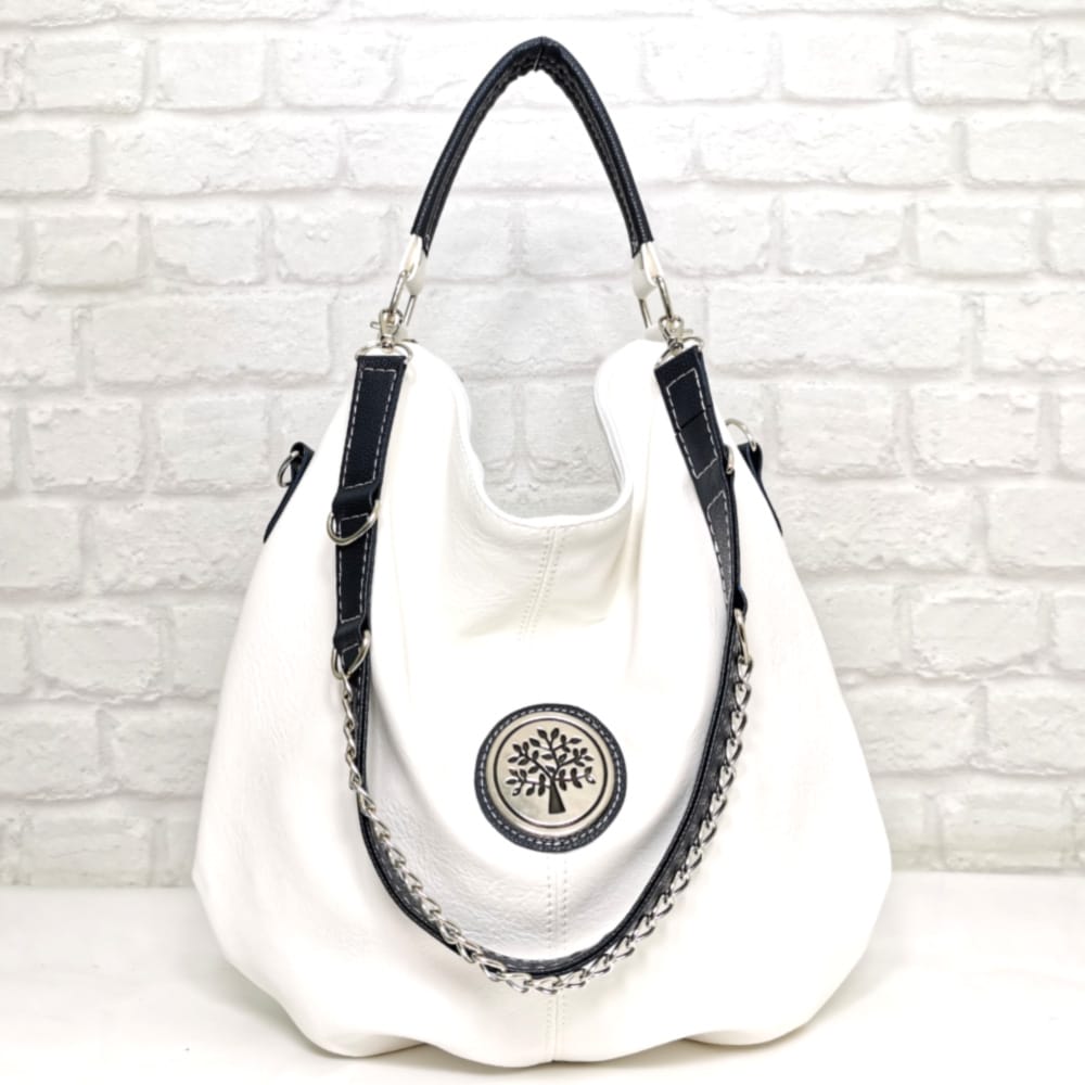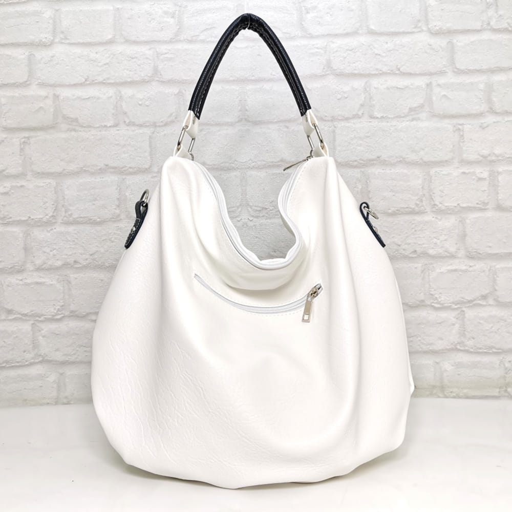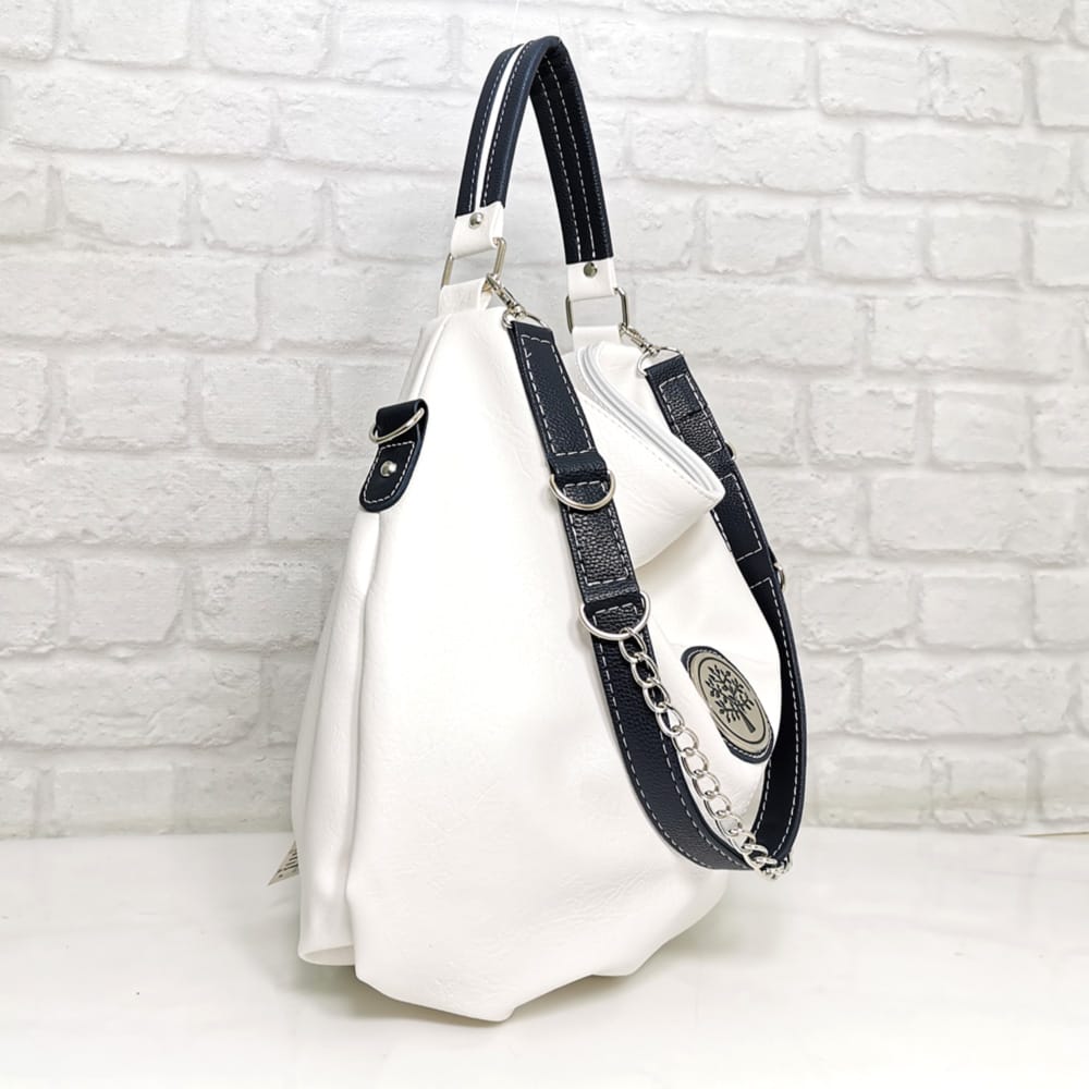 Една къса дръжка, една средно дълга дръжка с дължина 65 см. която става за носене на рамо с обемни дрехи, а ако не я ползвате, можете да я пуснете да виси отпред, като украсителен елемент. Има и още една дълга регулираща се дръжка.