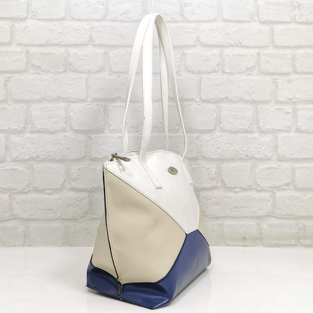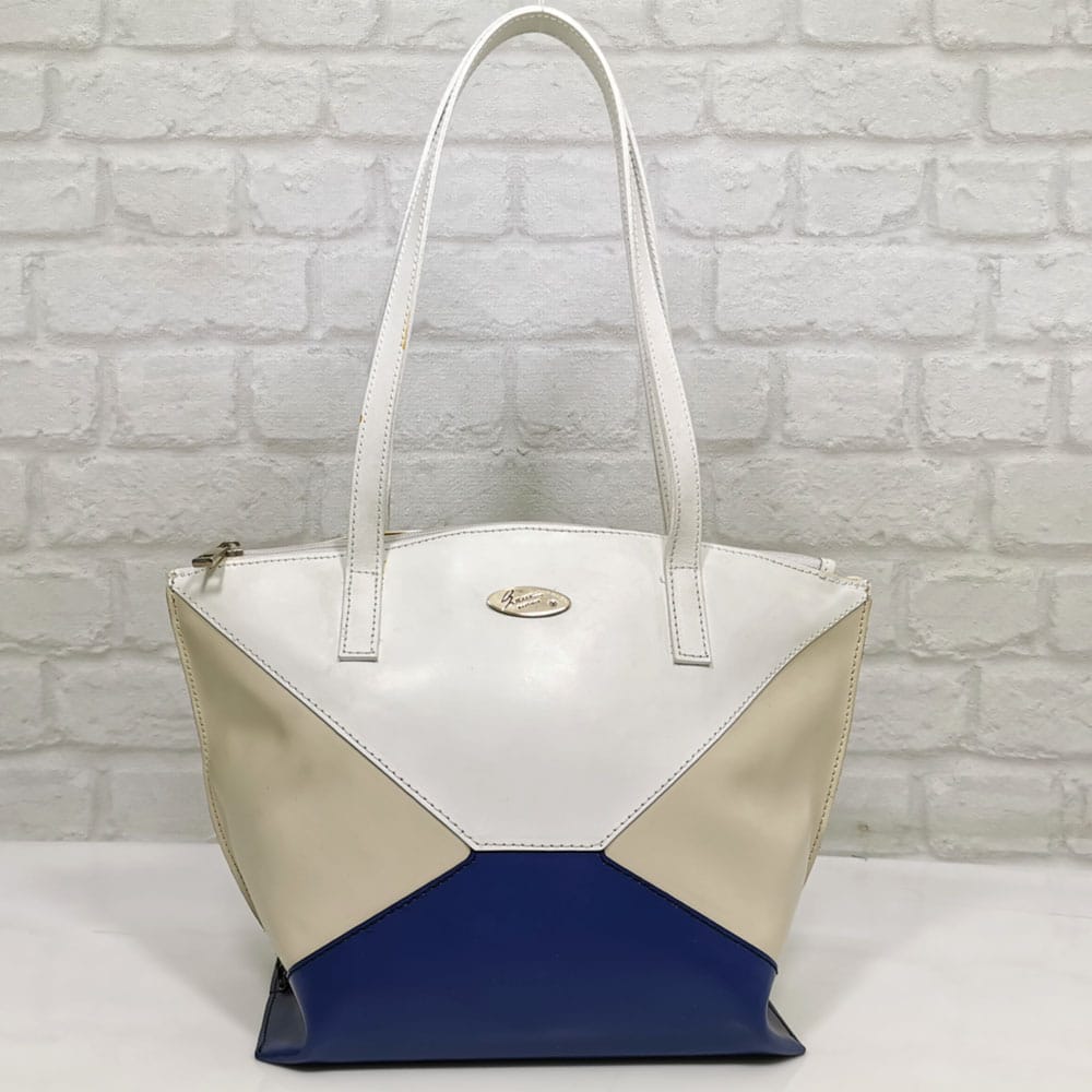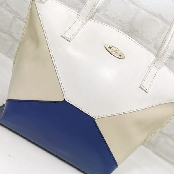 Тъмно син, екрю и бяло, обков сребрист.