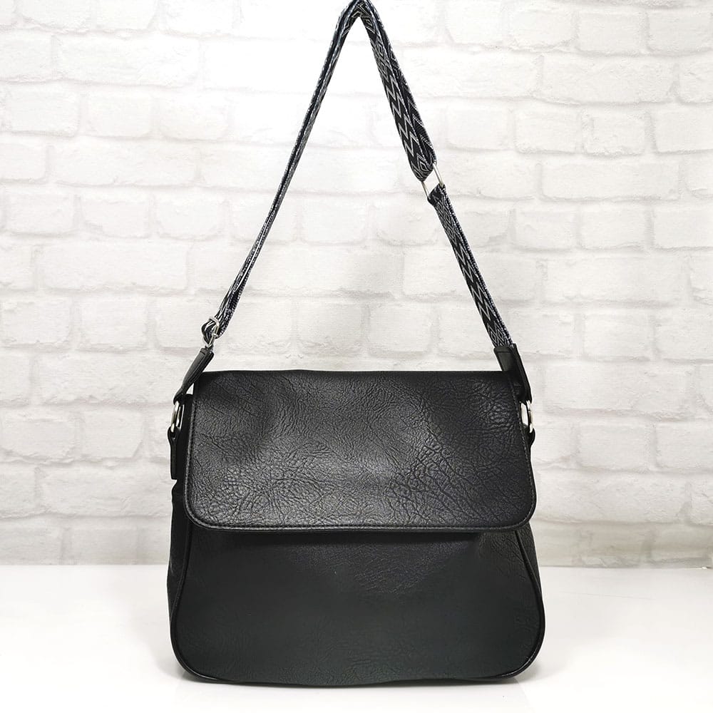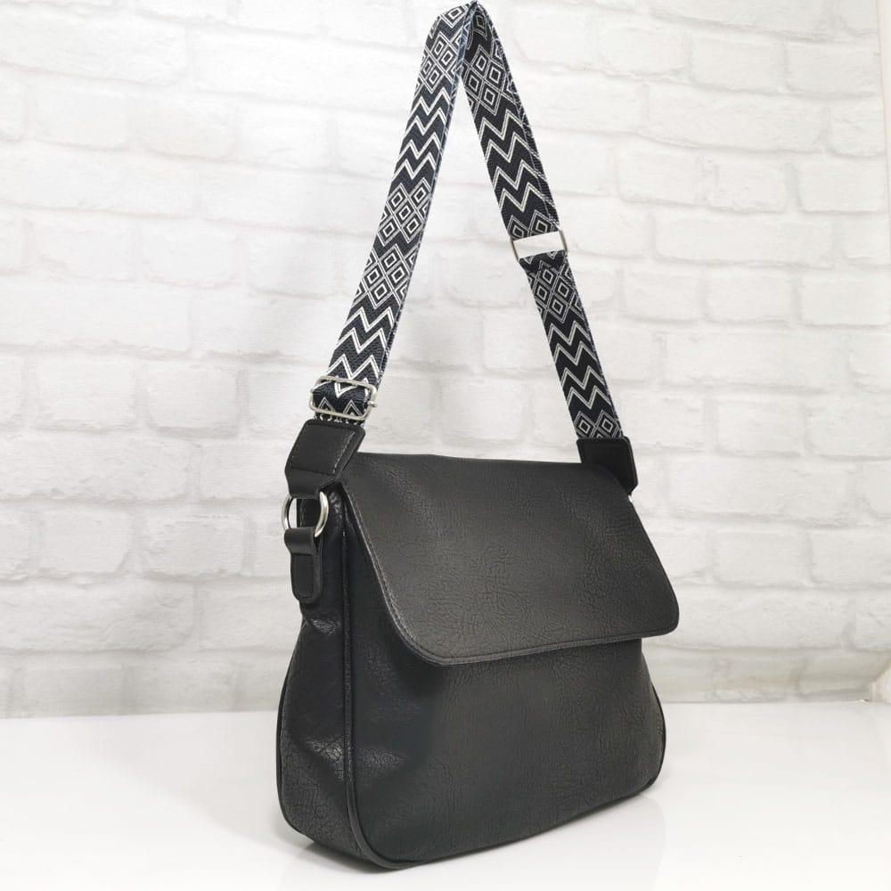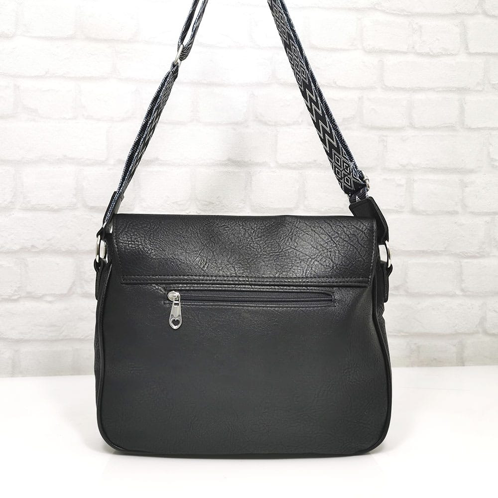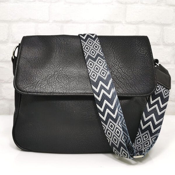 Чанта черен, дръжка черно с бяло, обков сребрист