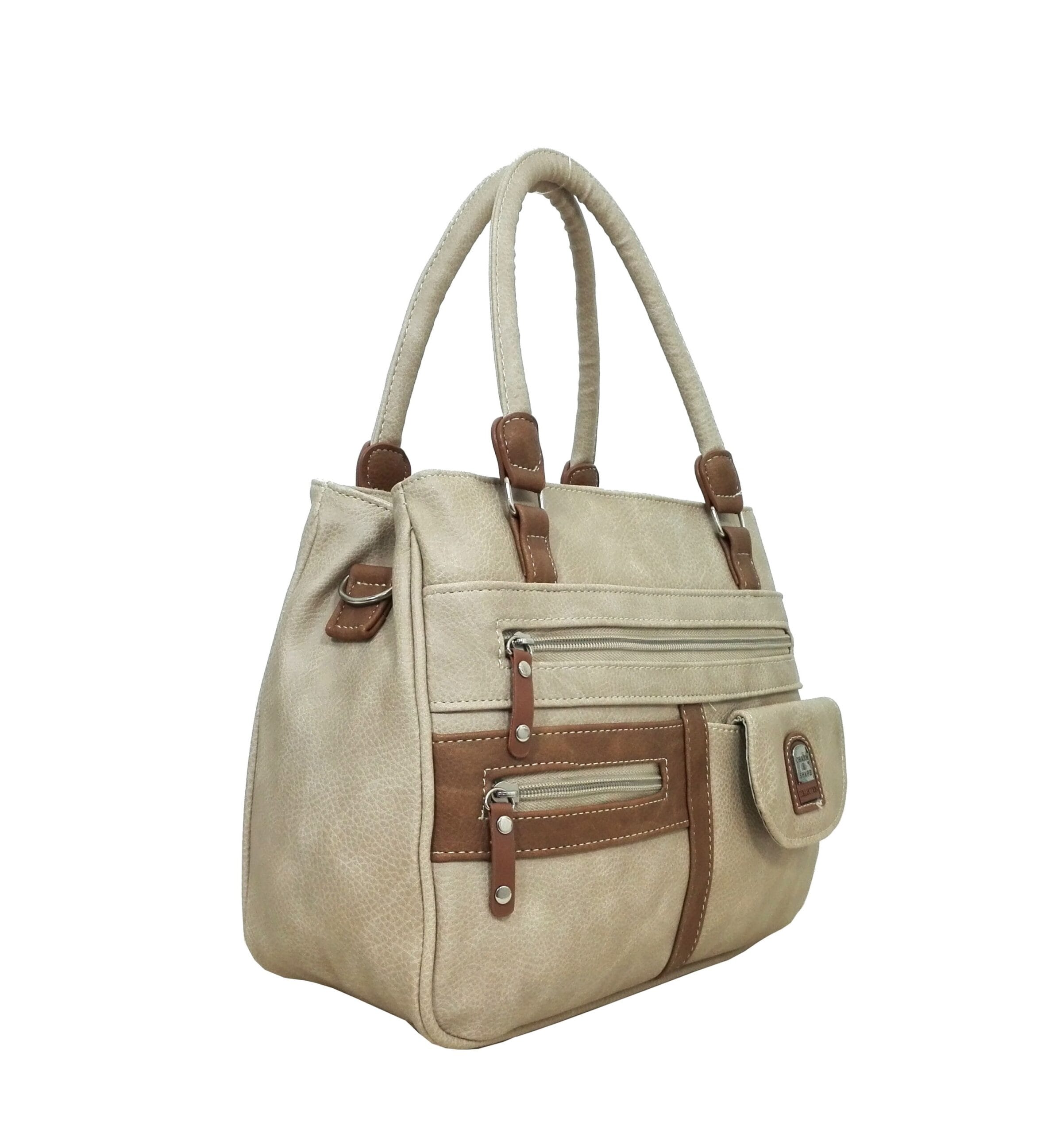 Отпред: Голям джоб с цип, малко джобче с капак затваря се с велкро и още едно малко джобче с цип