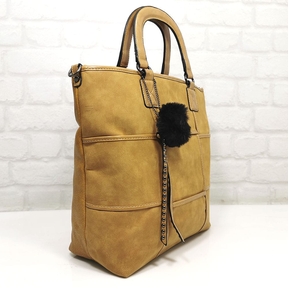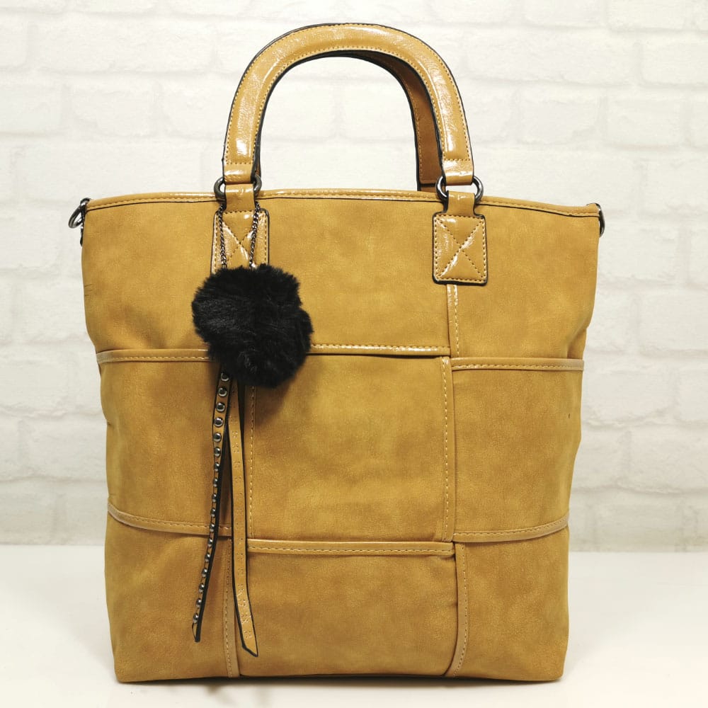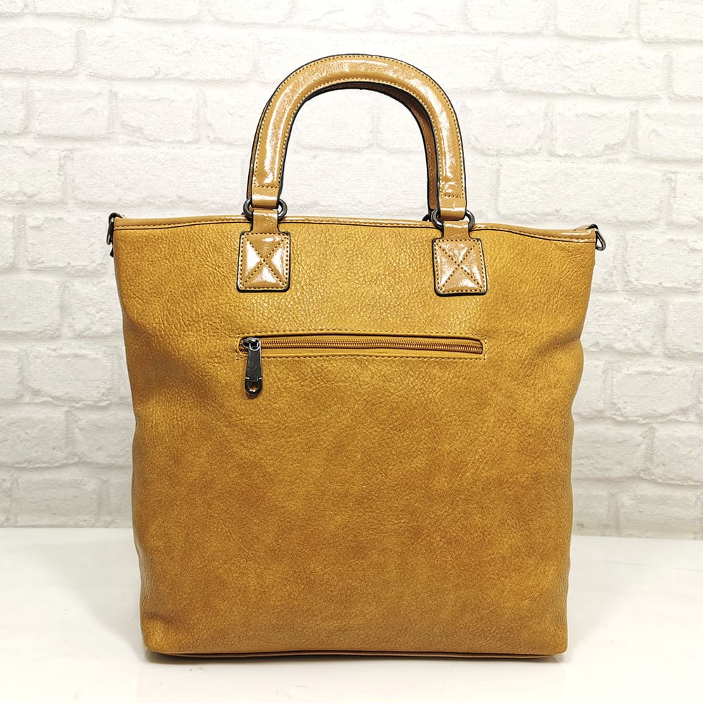 Вътре: средна преграда с цип, малко джобче с цип и два джоба за мобилни телефони.