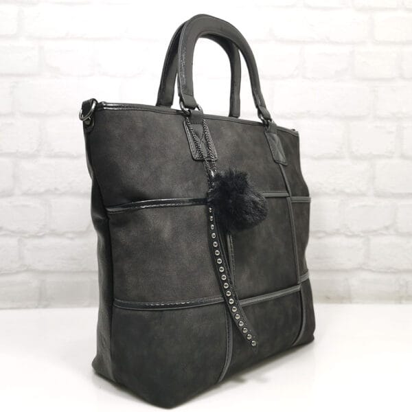 Елегантна чанта с интересен дизайн, красива комбинация на велур с кожа и с практично разпределение. Подарък подвижна висулка с черно пухче. Всички стоки са с преглед и тест! Безплатна доставка за заявки над 60.00 лева до офис на транспортна фирма!