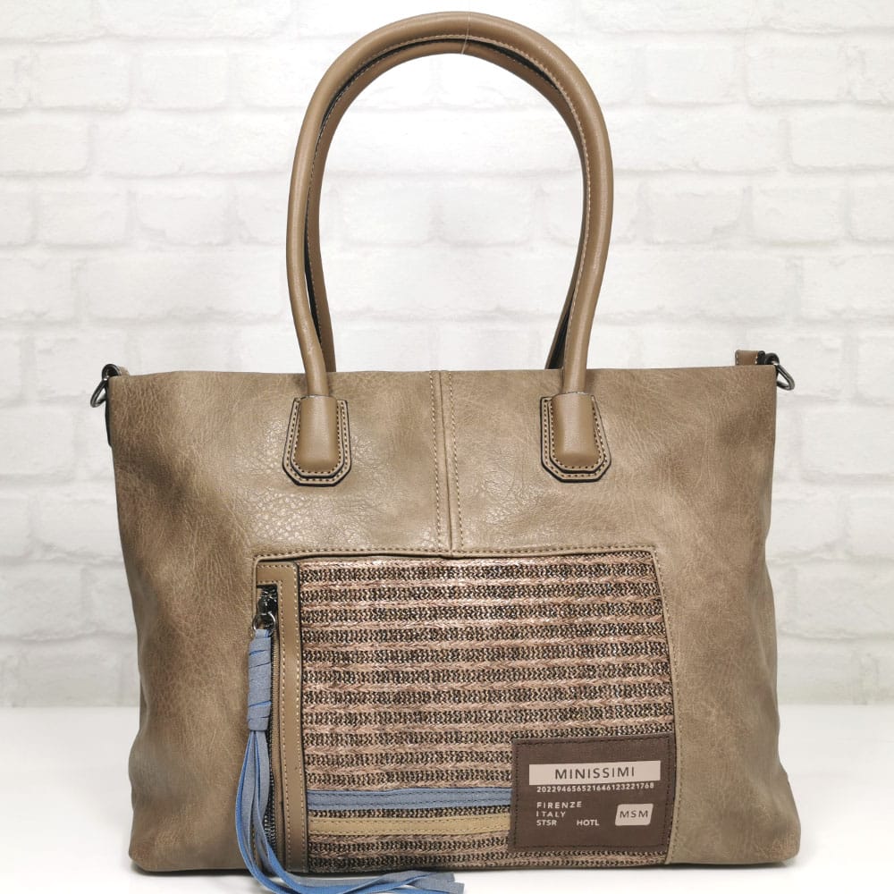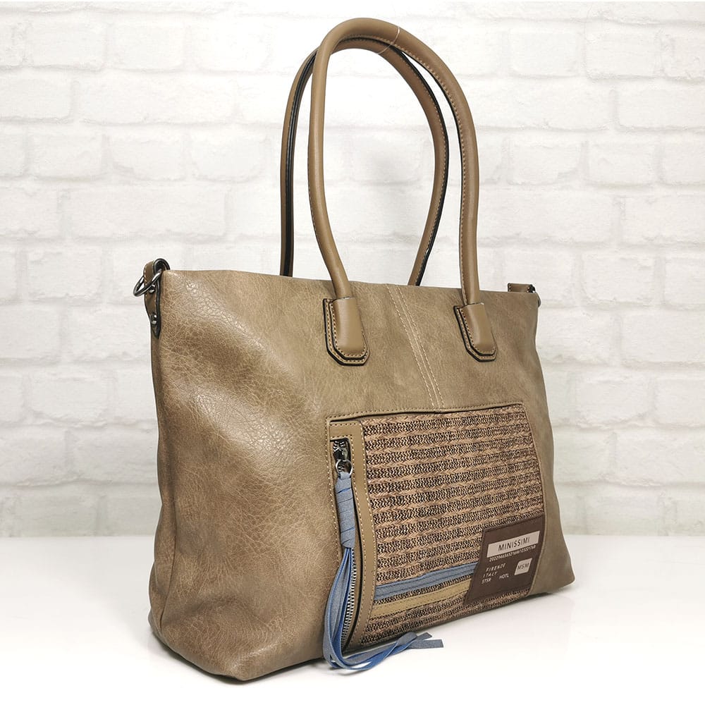 Две дръжки, удобни за носене на рамо, една подвижна регулираща се дълга дръжка с ширина 2 см. и дължина 110 см. и още една не регулираща се дръжка с ширина 4 см и фиксирана дължина 62 см.