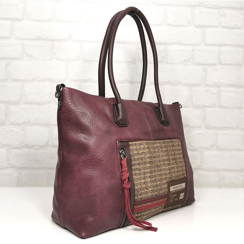 Основен бордо-вишна, гарниран с различни нюанси на бордо и акценти в бежово и тъмно кафяво, обков сребрист матиран.