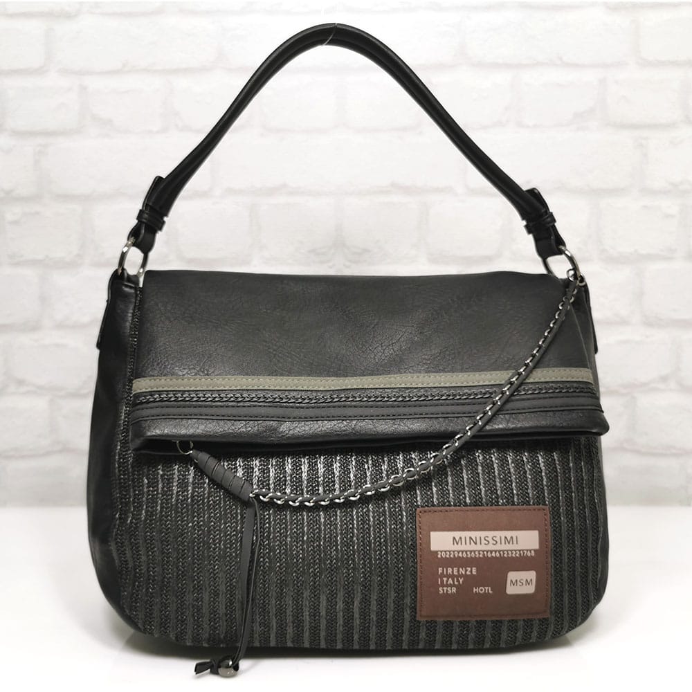 Една дръжка, която е удобна за носене на рамо и една подвижна регулираща се с метална тока дълга дръжка.