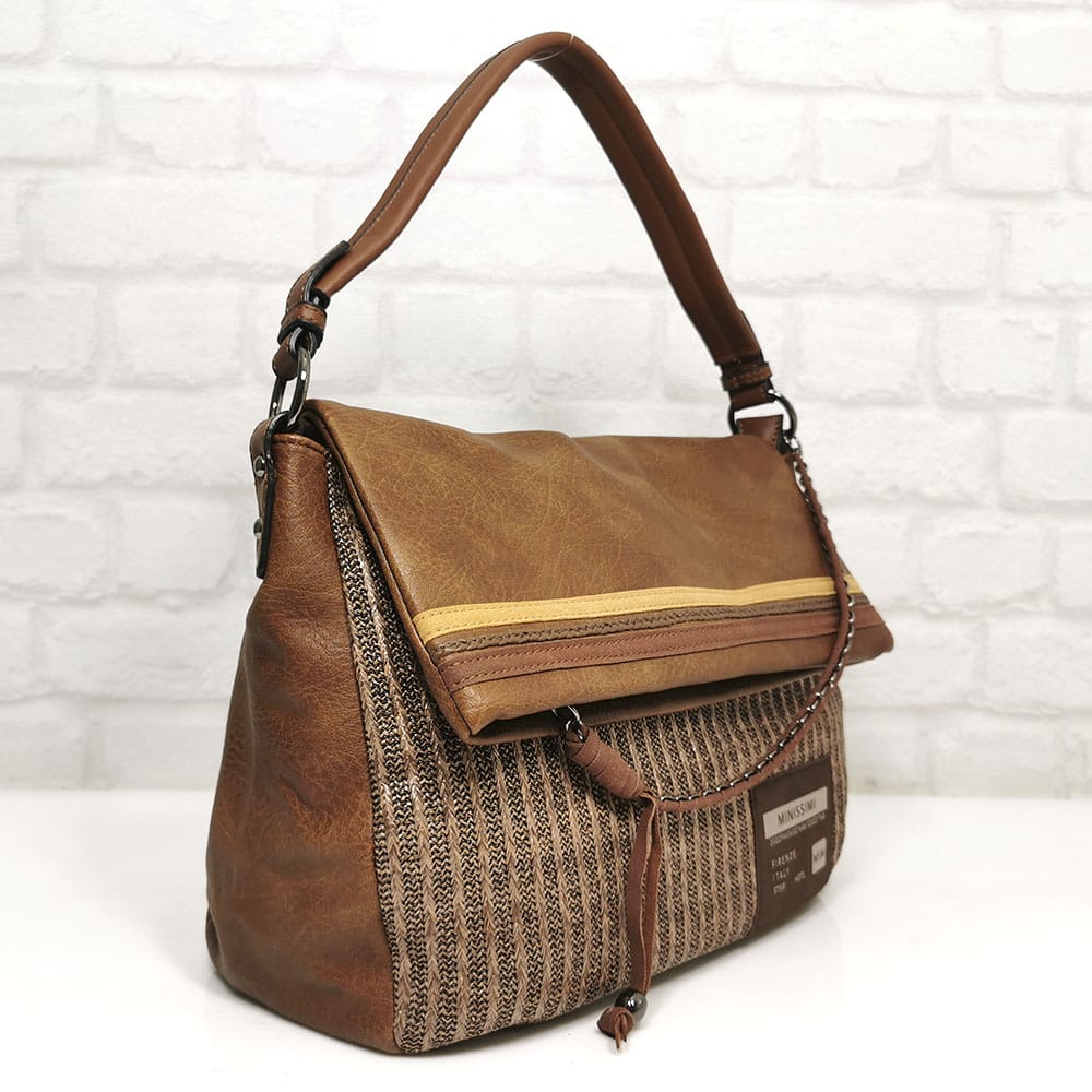 Спортно-елегантна дамска чанта Мария С кафява-брик с оригинален дизайн на италианската фирма „Мария С“ с удобно разпределение, в съчетание от няколко цвята. Безплатна доставка за заявки над 60.00 лева до офис на транспортна фирма!