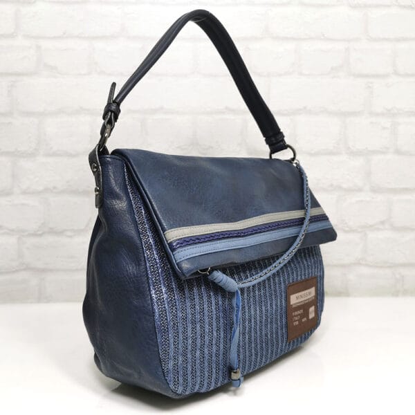 Основен син меланж, с акценти в тъмно кафяво, обков сребрист матиран.