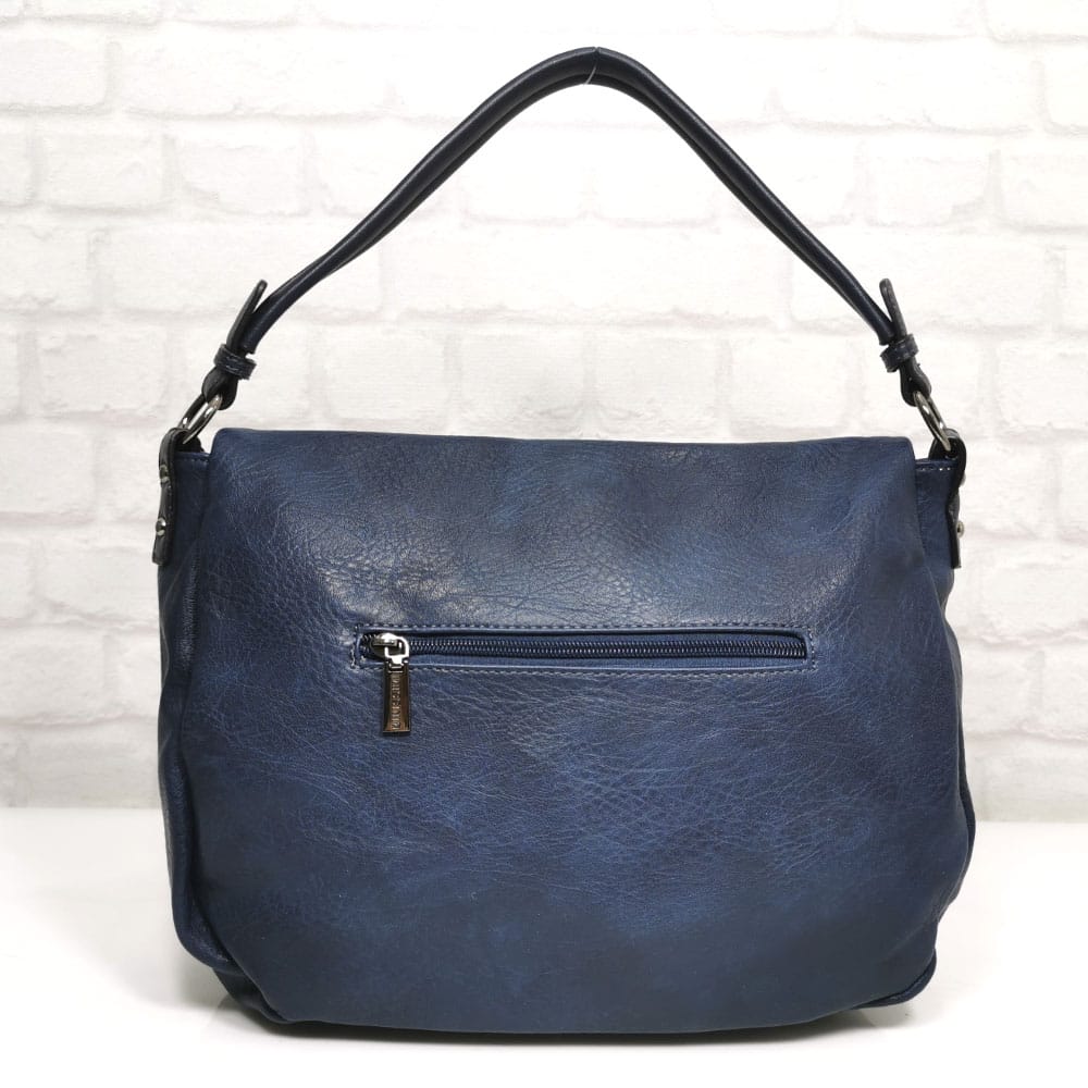 Под капака има голяма преграда с цип, вътре в нея има голям джоб с цип, малко джобче с цип и два джоба за мобилни телефони.