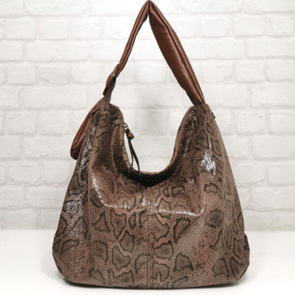 Тъмно кафяв с черен животински принт, обков сребрист матиран.