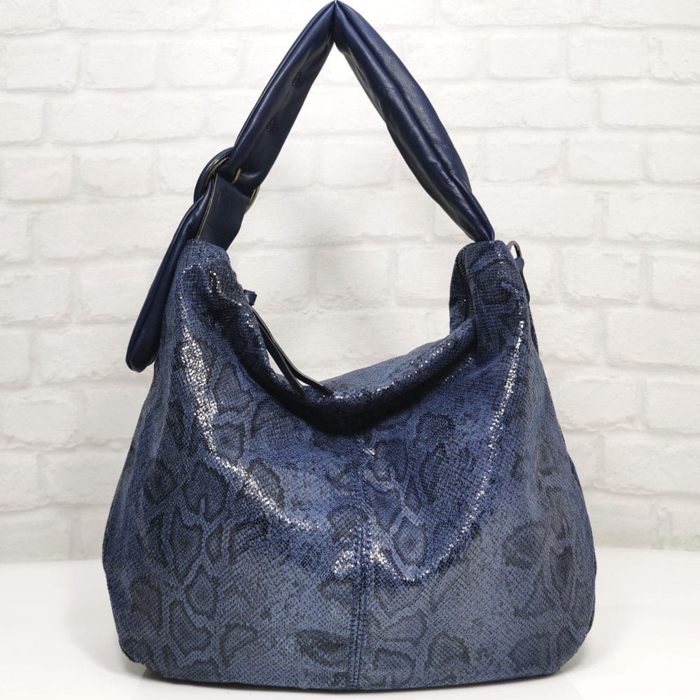 Тъмно син с черен животински принт, обков сребрист матиран.