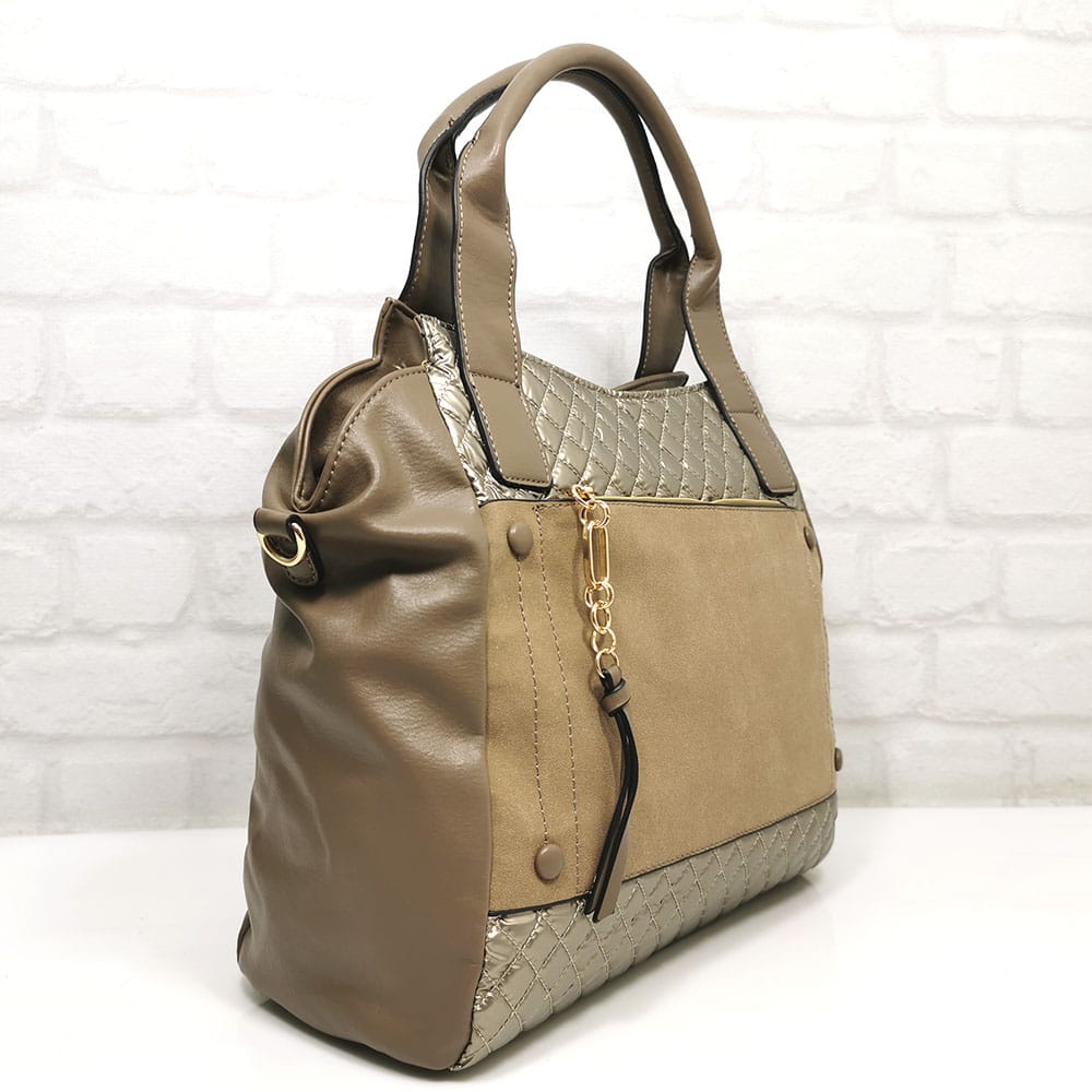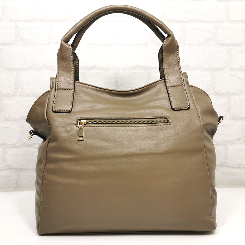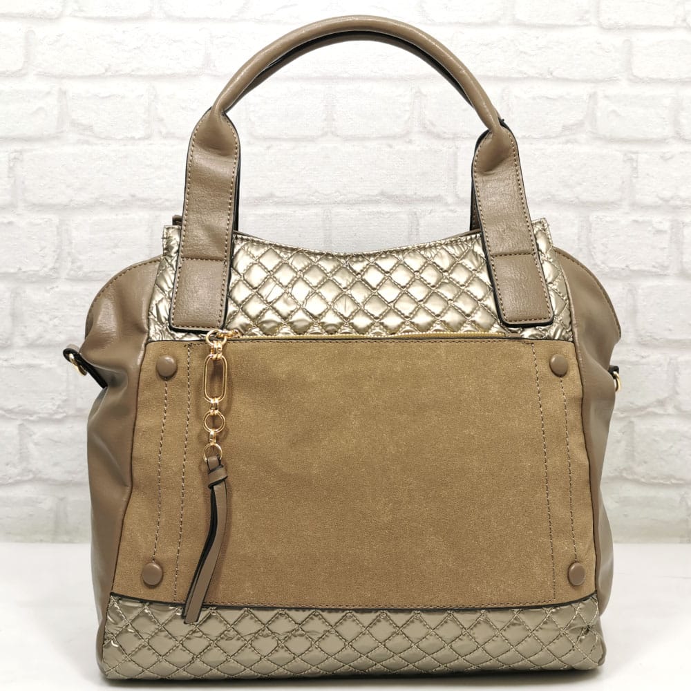 Две къси дръжки, стават и за носене през рамо и една текстилна, подвижна регулираща се дълга дръжка.