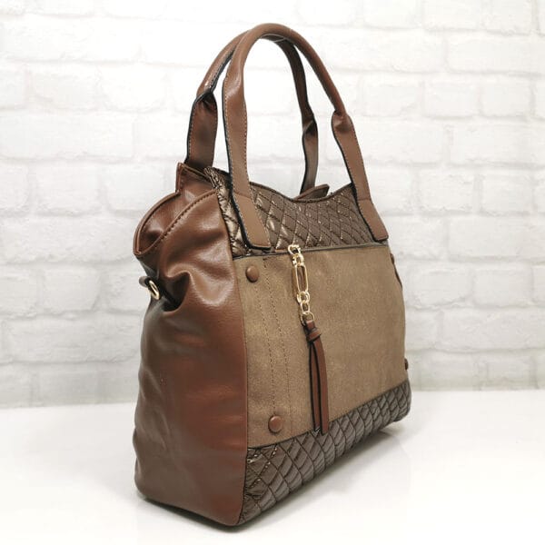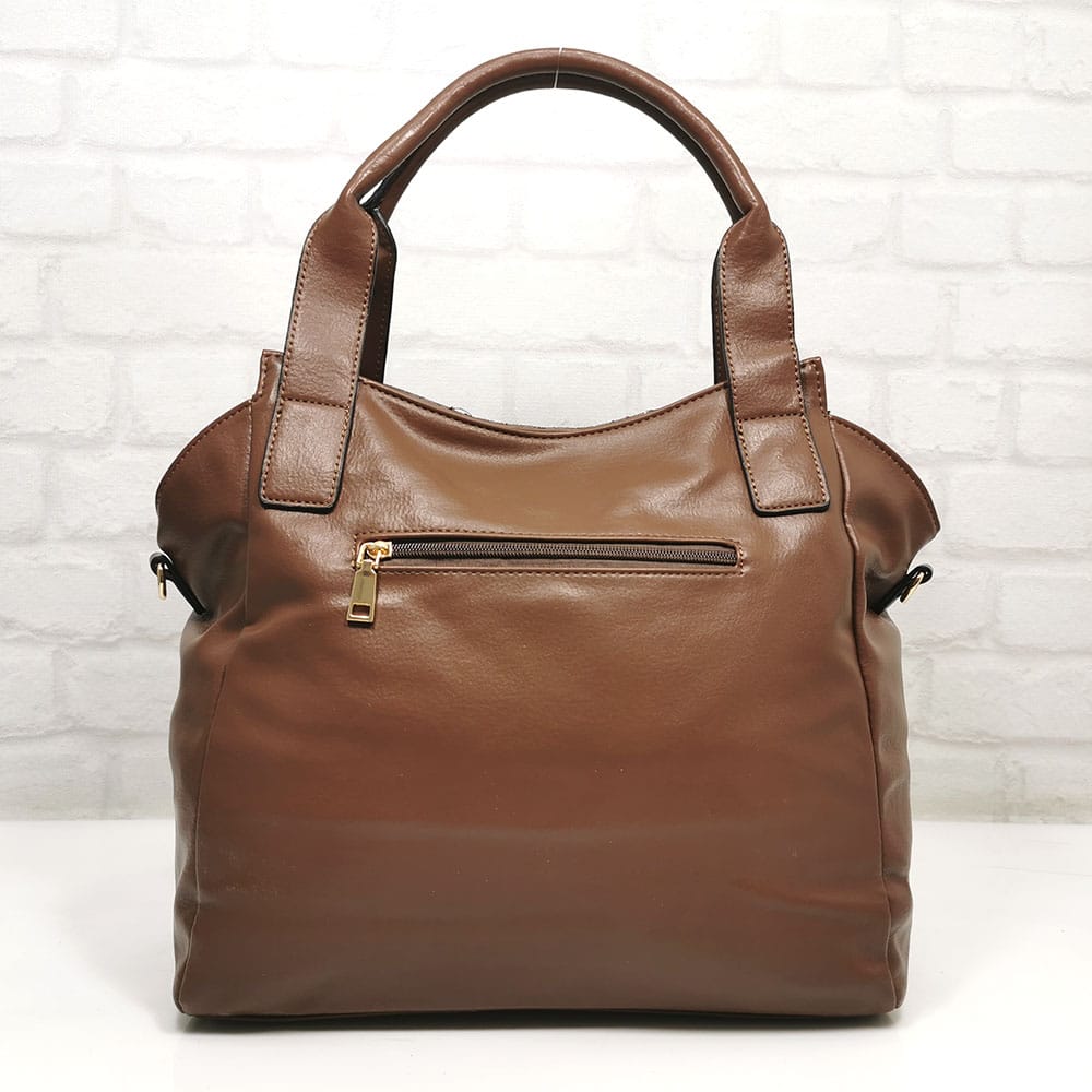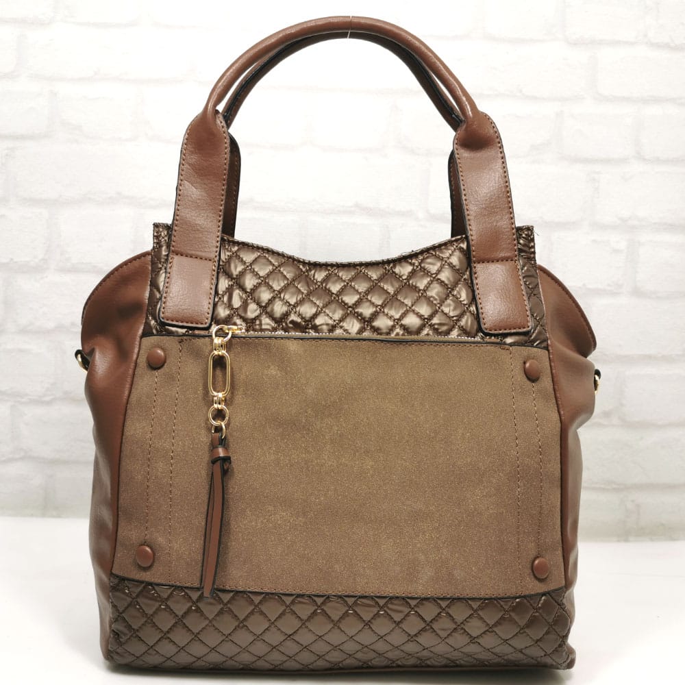 Две къси дръжки, стават и за носене през рамо и една текстилна, подвижна регулираща се дълга дръжка.