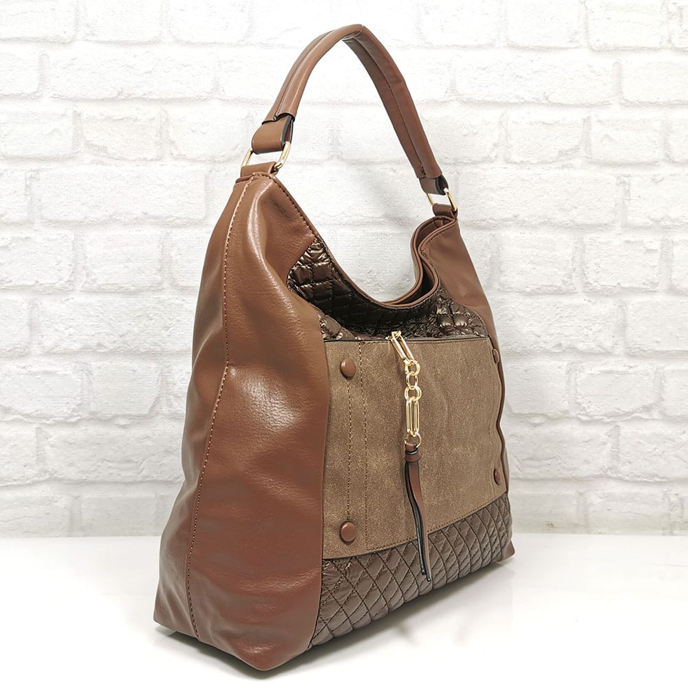 Една удобна за носене през рамо дръжка и една текстилна, подвижна регулираща се дълга дръжка.