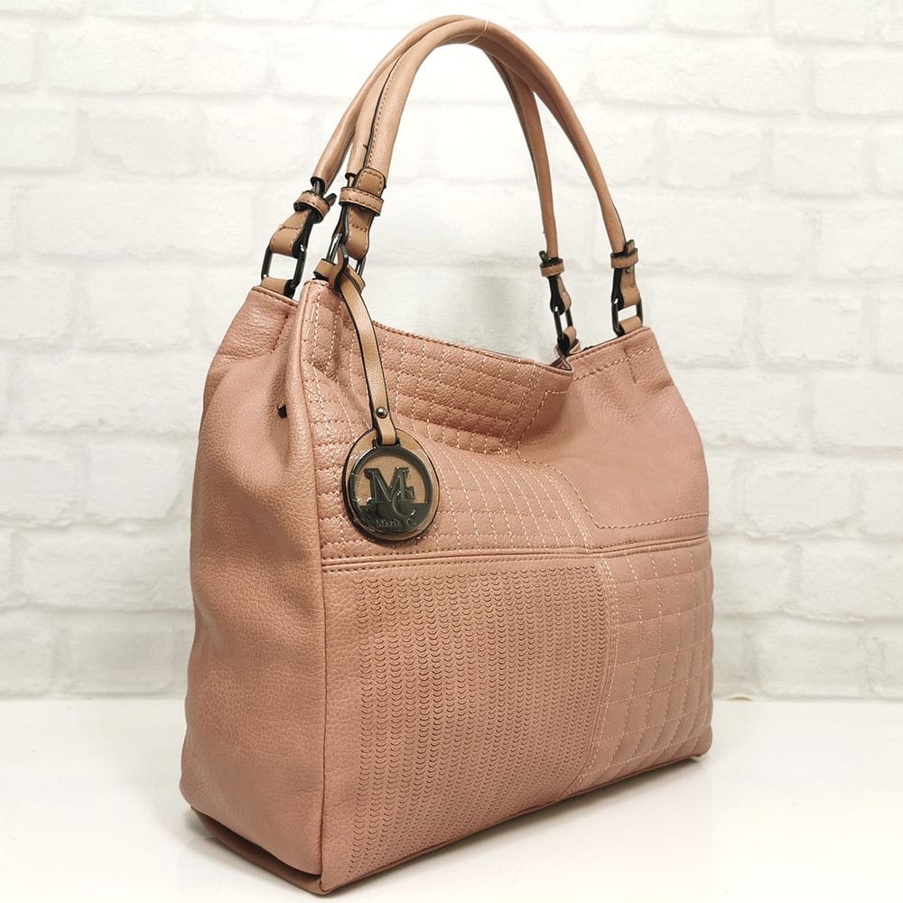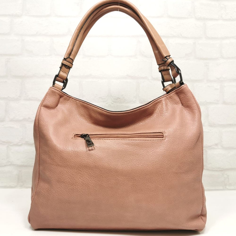 Отвътре: малка преграда с цип, закрепена за една от стените на чантата, малко джобче с цип, два джоба за мобилни телефони.
