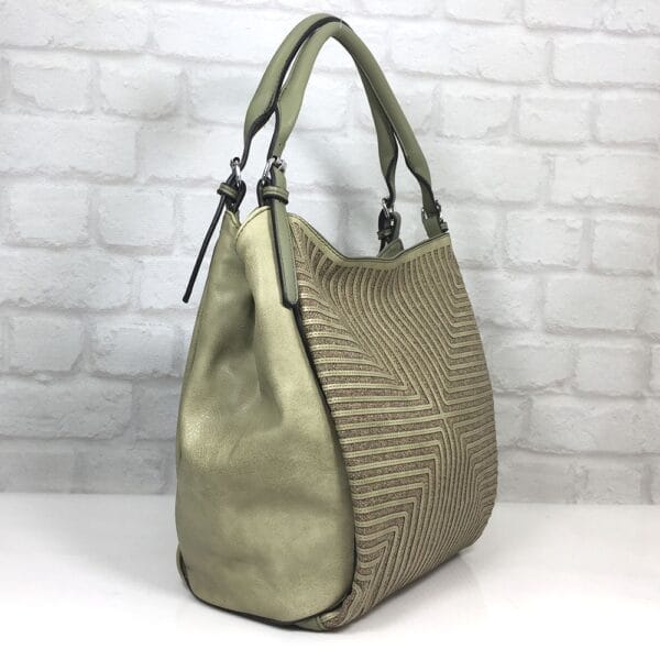 Еко кожа, предната част е на ленена основа гарнирана с кожени ивици, хастар-полиестер