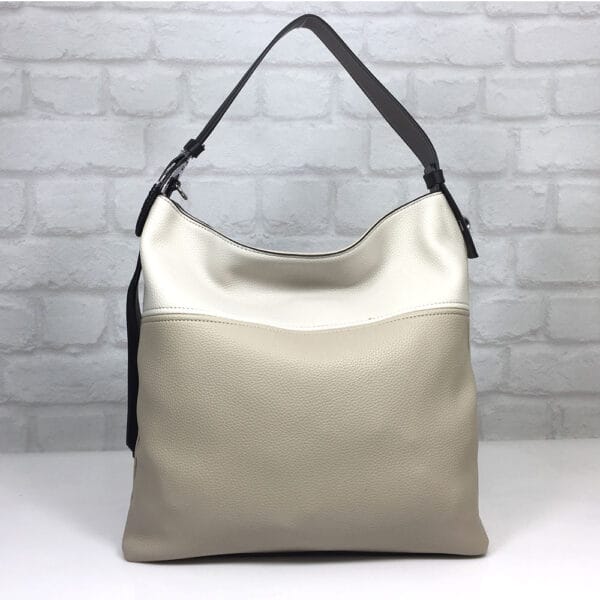 Основен бежов, гарниран с екрю, дръжка-черна със сребрист орнамент