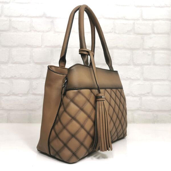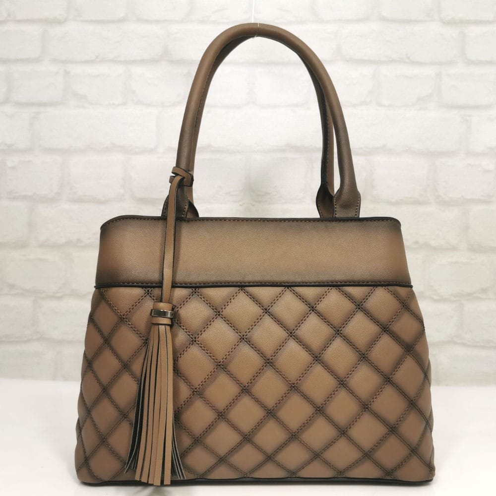 Отвътре: средна преграда с цип, малък джоб с цип, два джоба за мобилни телефони.