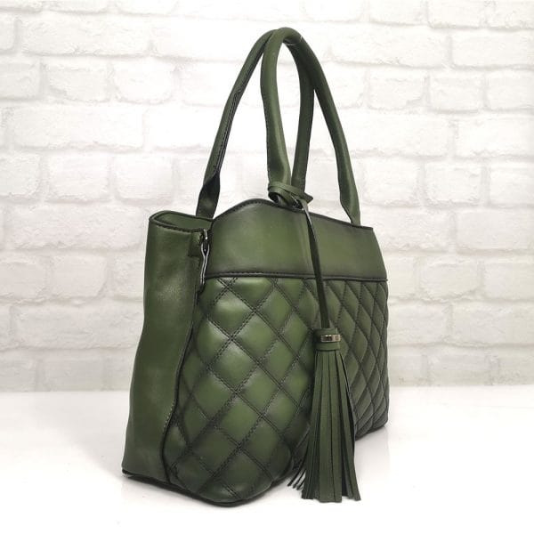 Отвътре: средна преграда с цип, малък джоб с цип, два джоба за мобилни телефони.